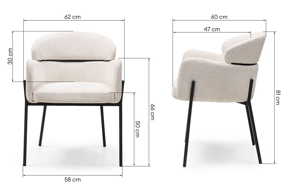 Chaise Granda en écru avec pieds noirs et accoudoirs pratiques. .. plus
