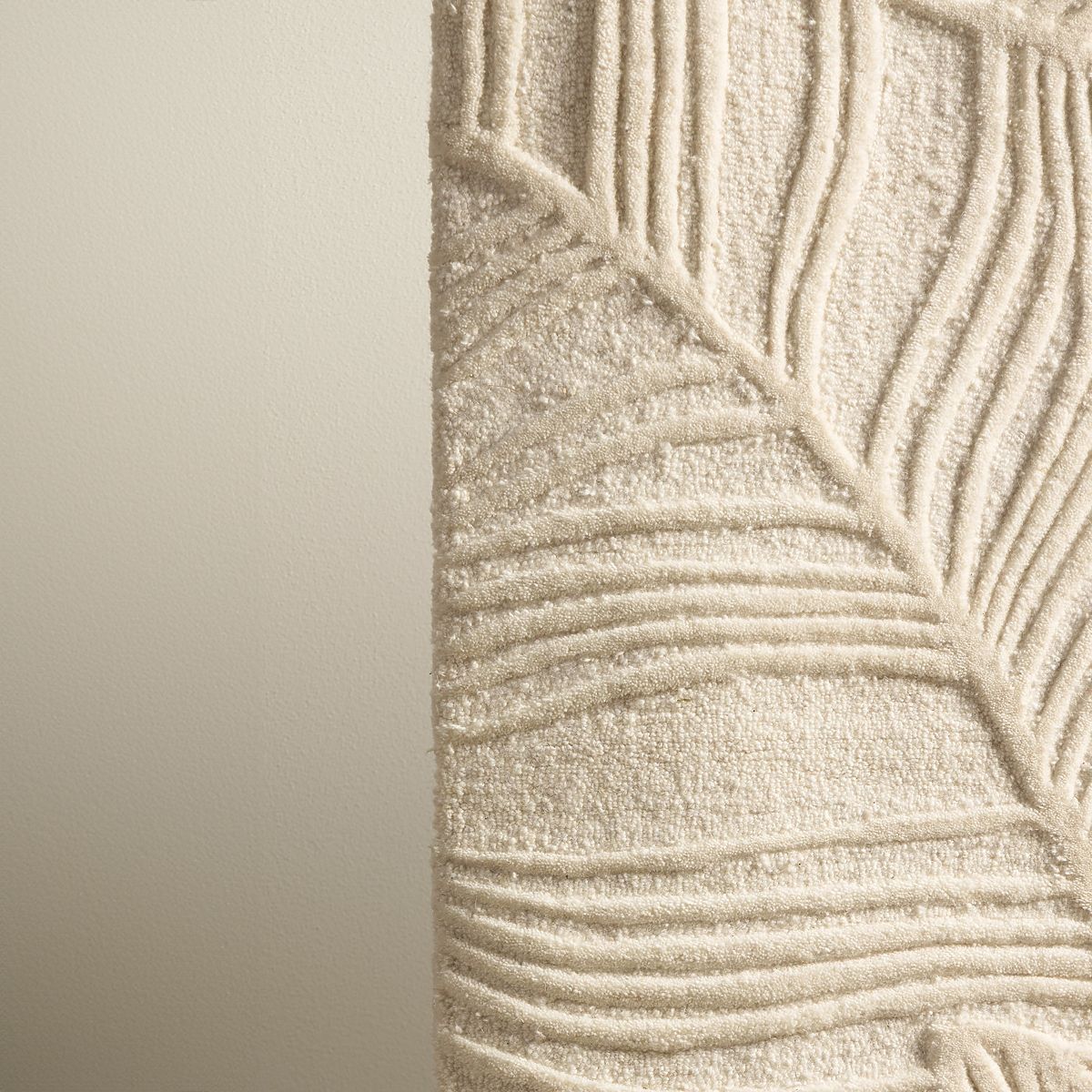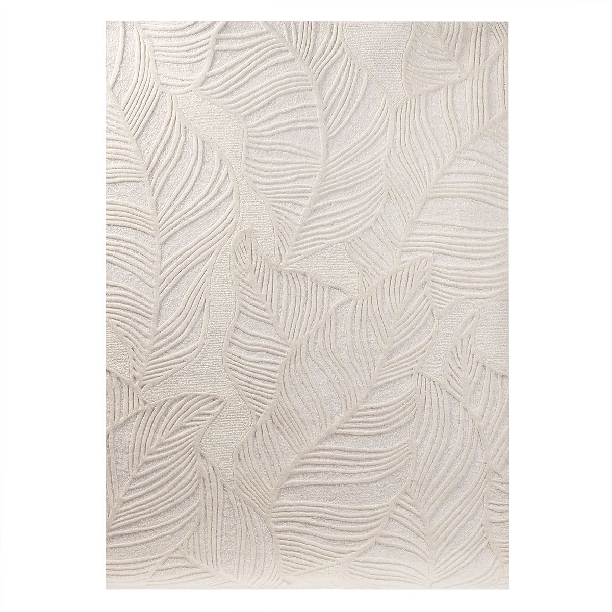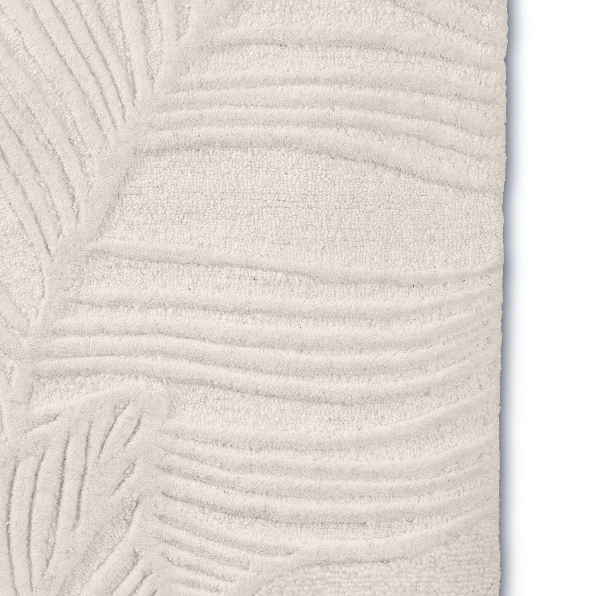 Tapis Mona en laine crème avec motif à feuilles, tufté à la main. .. plus