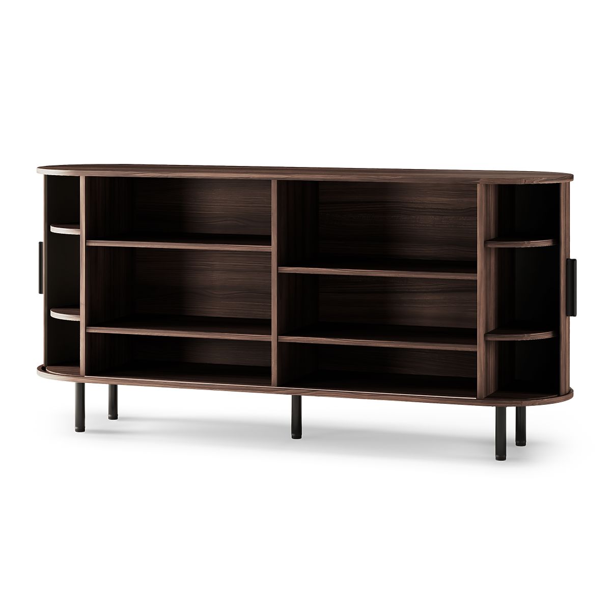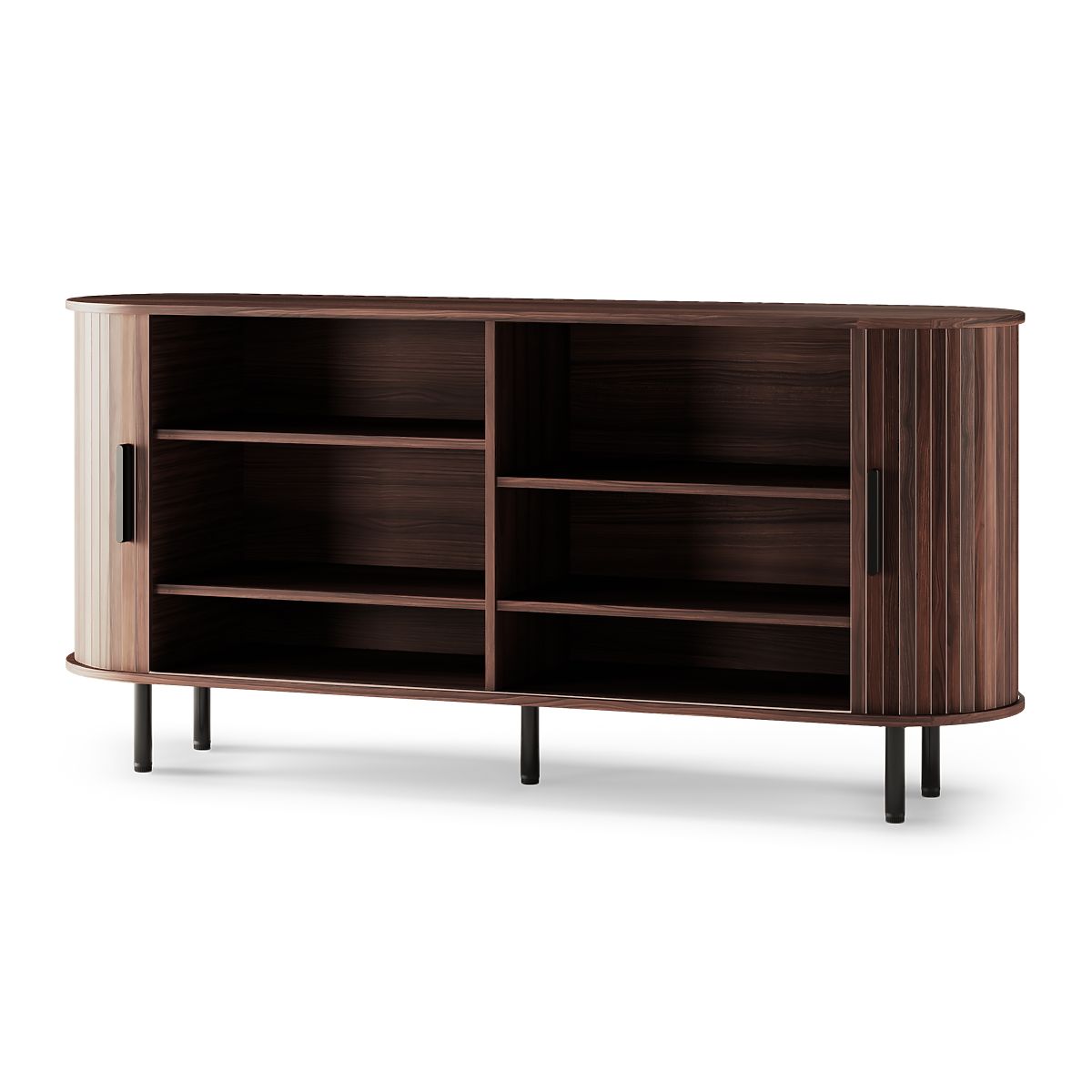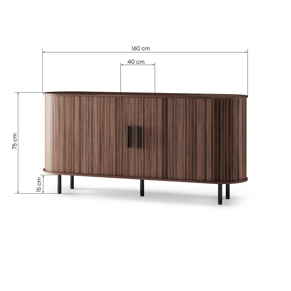 Commode design avec lamelles et finition noyer foncé. .. plus