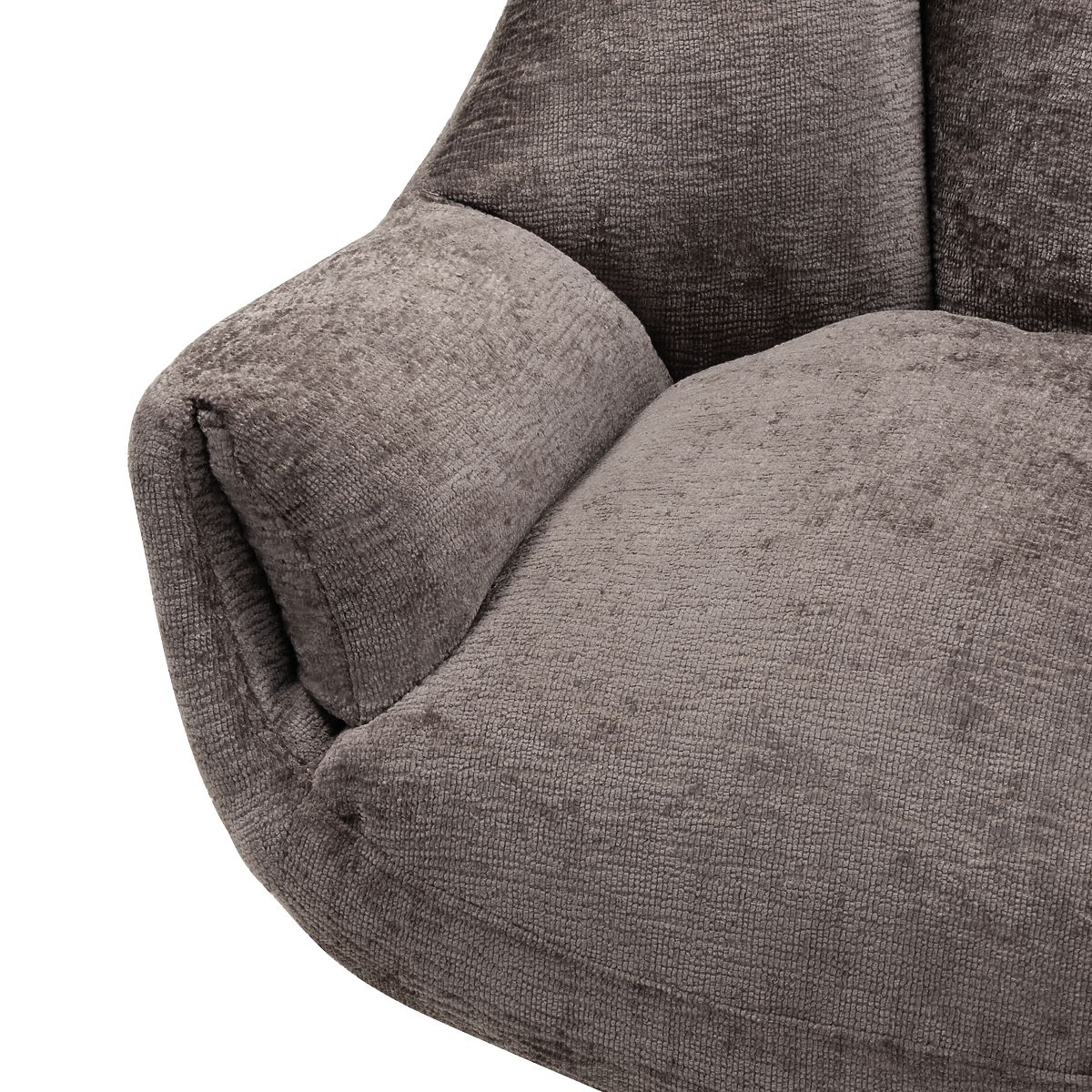 Chaise pivotante en tissu brun-gris avec base chromée et accoudoirs. .. plus