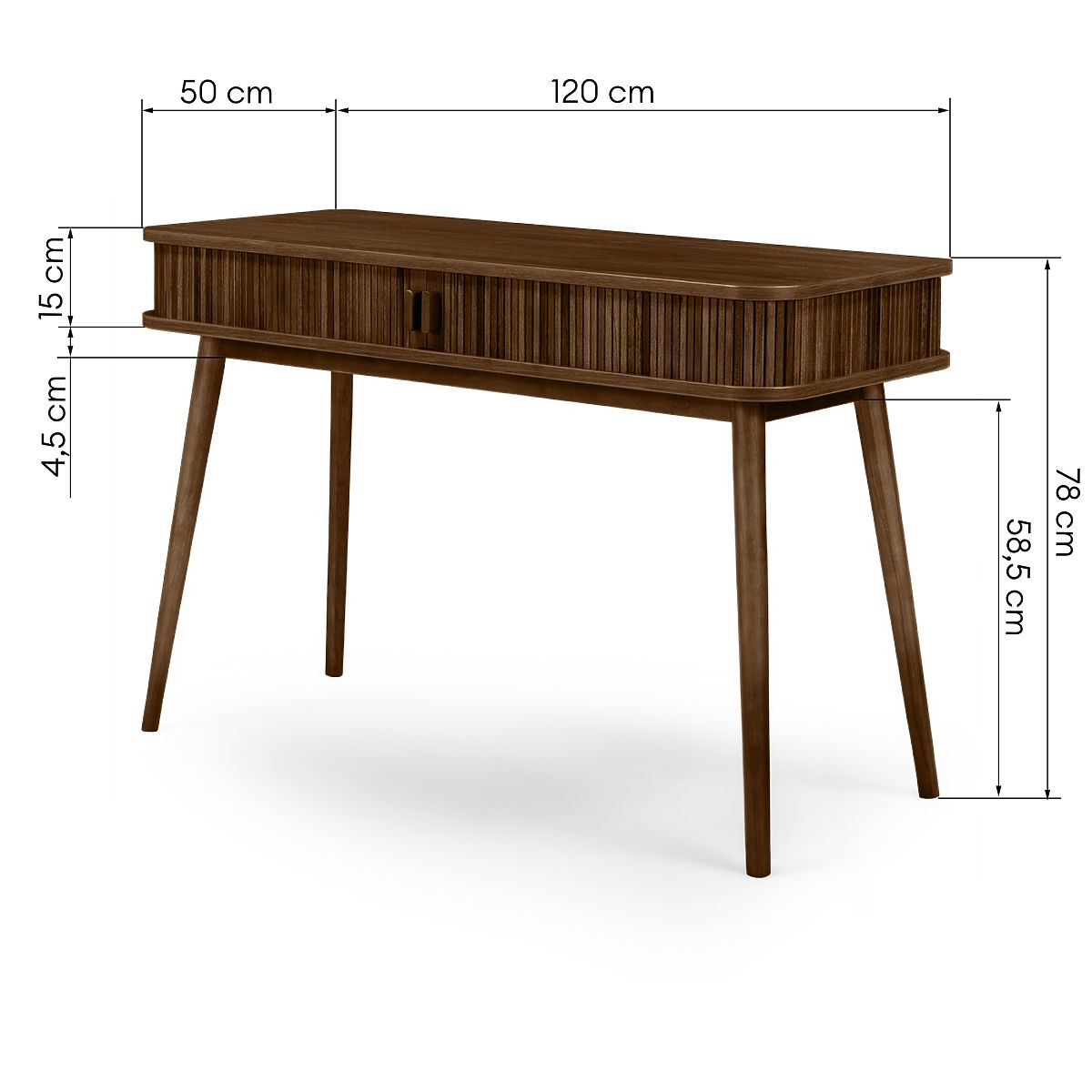 Bureau Clemente avec lamelles décoratives et pieds en bois hauts. .. plus