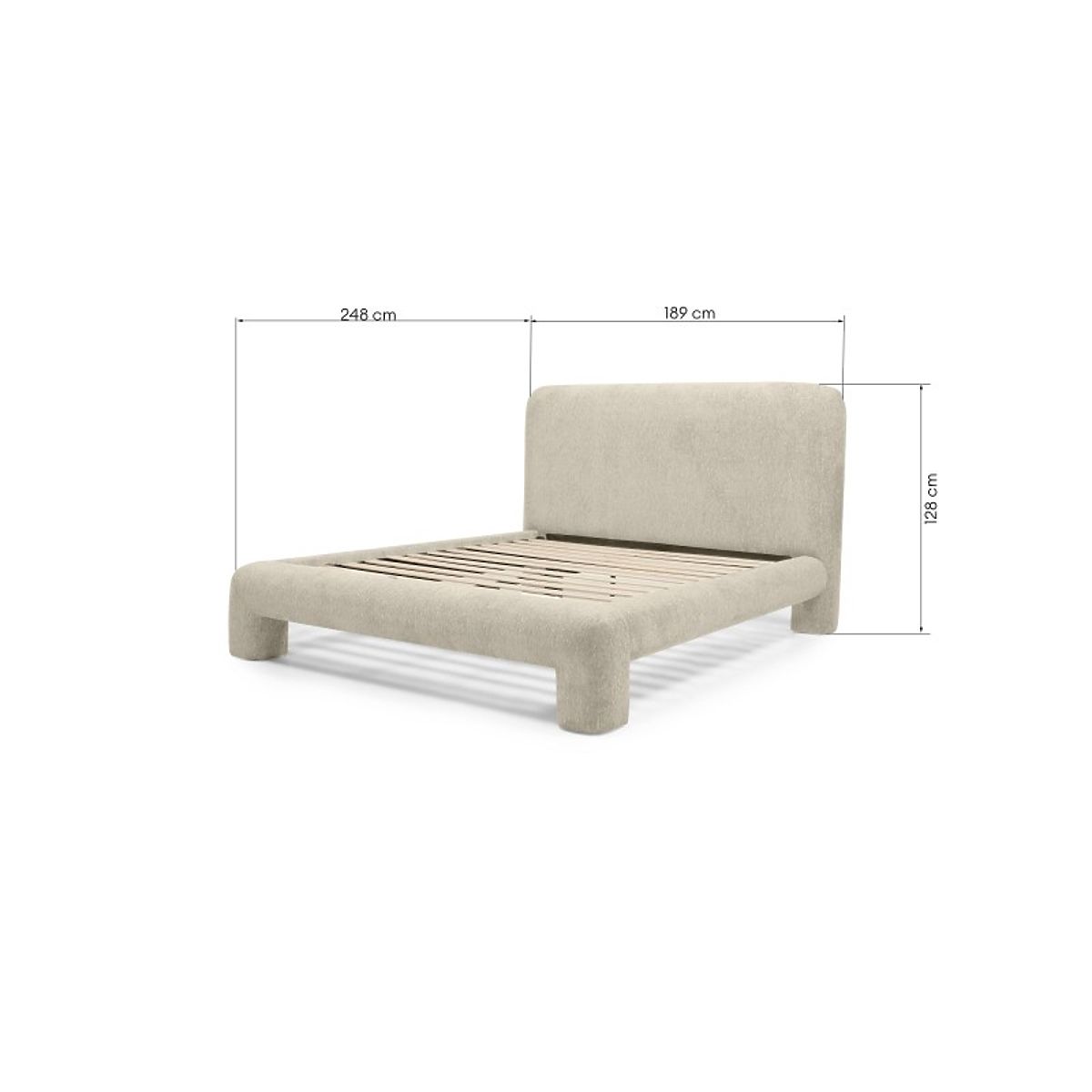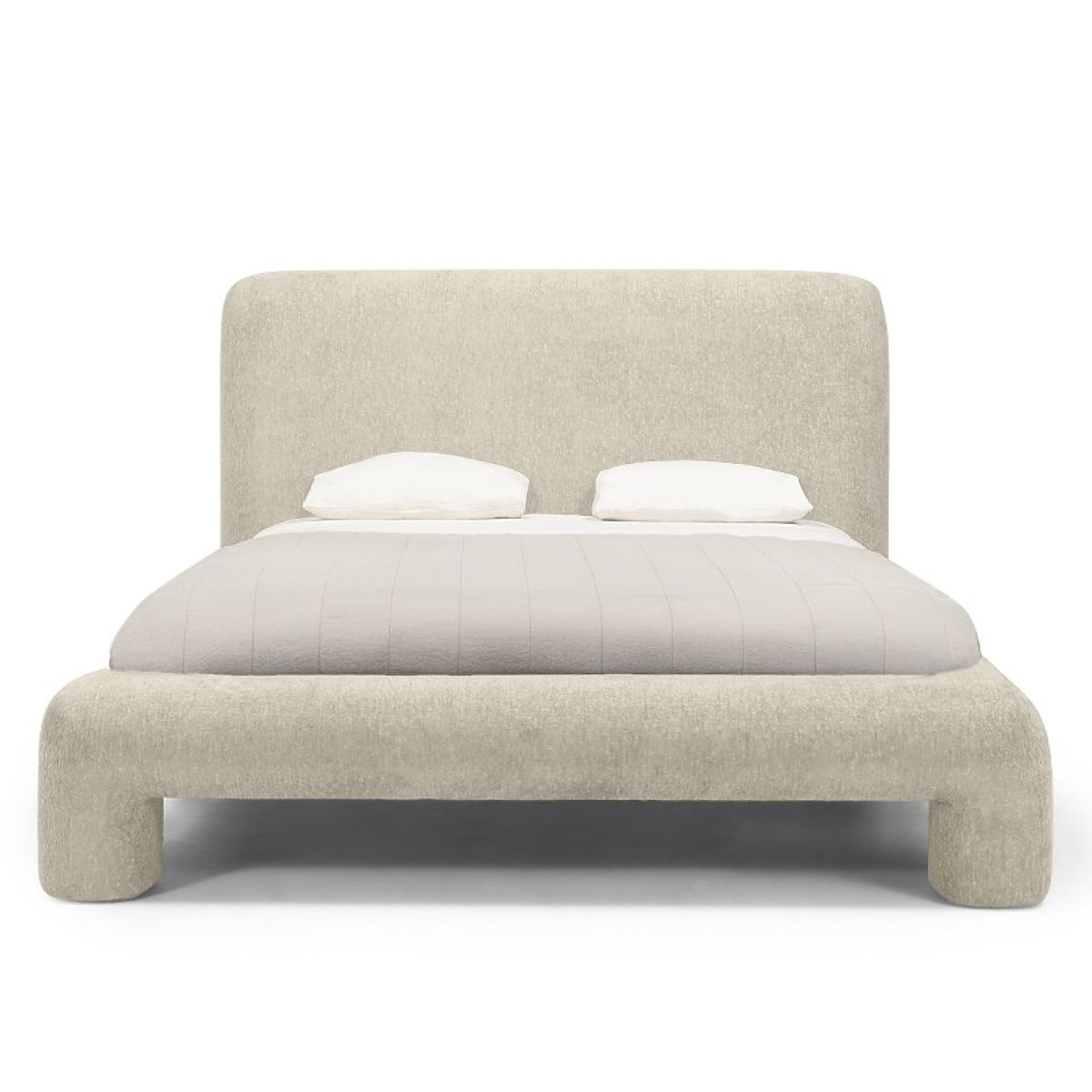 Lit rembourré Rolly avec sommier, gris clair et formes arrondies. .. plus