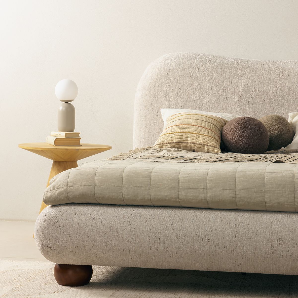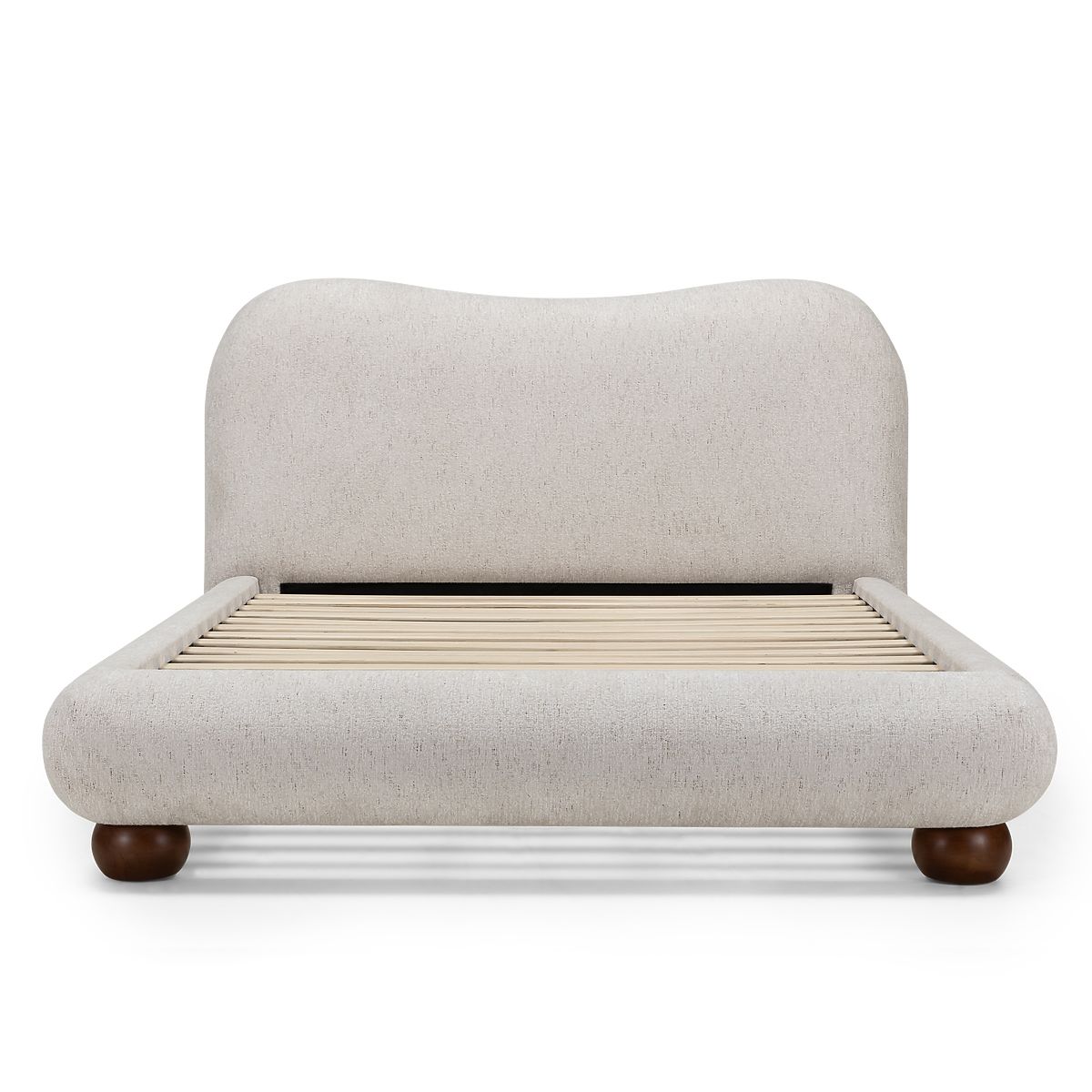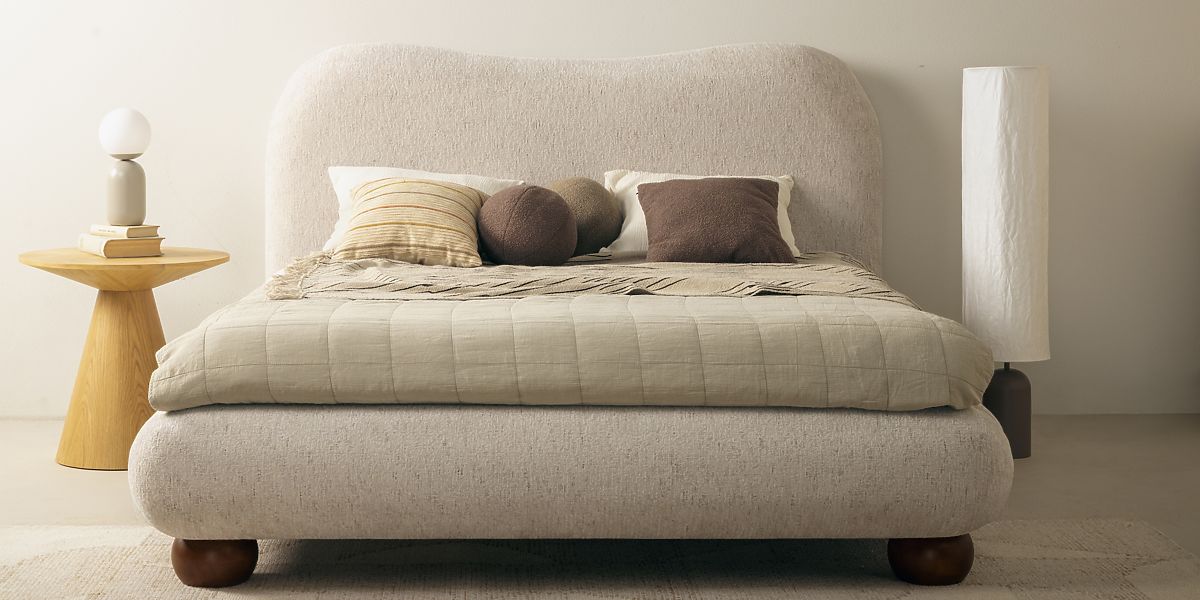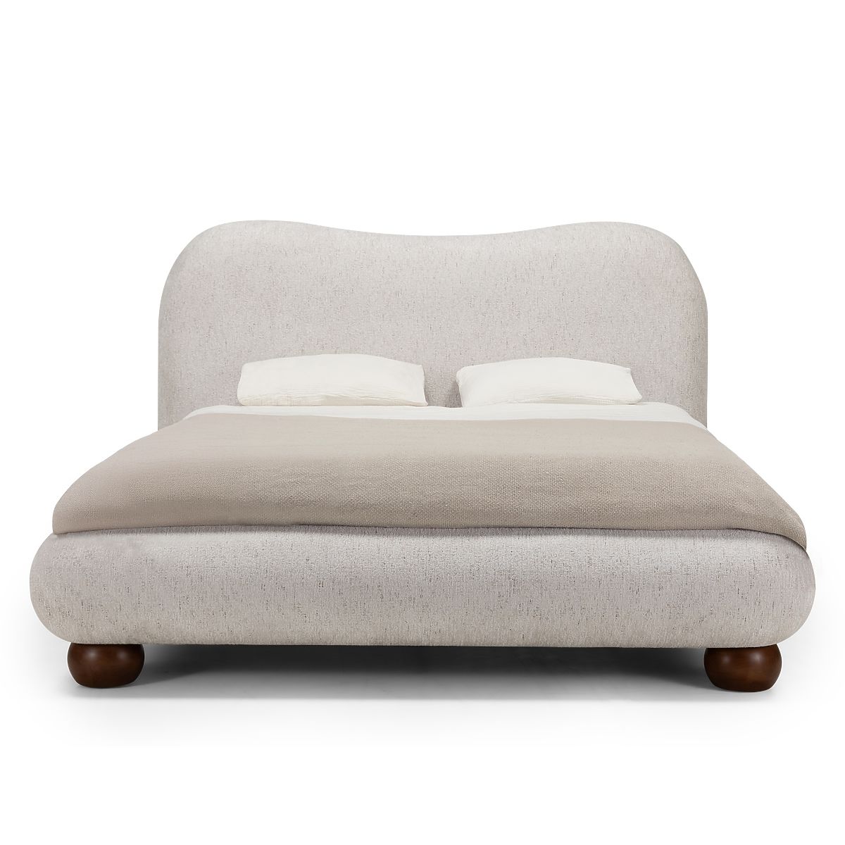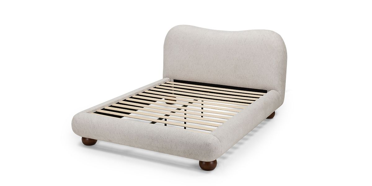 Lit Bowee beige clair avec sommier et pieds ronds élégants. .. plus