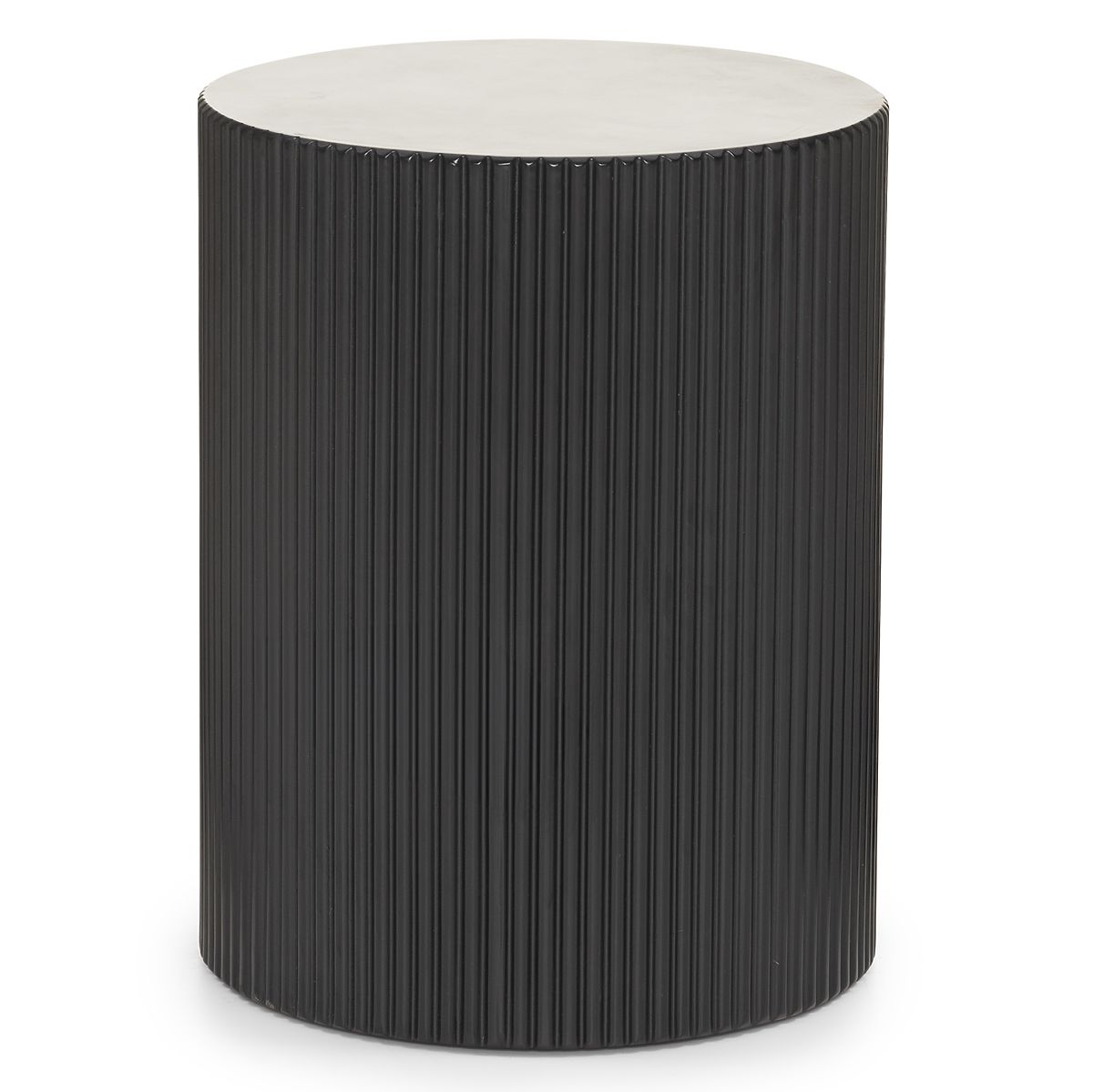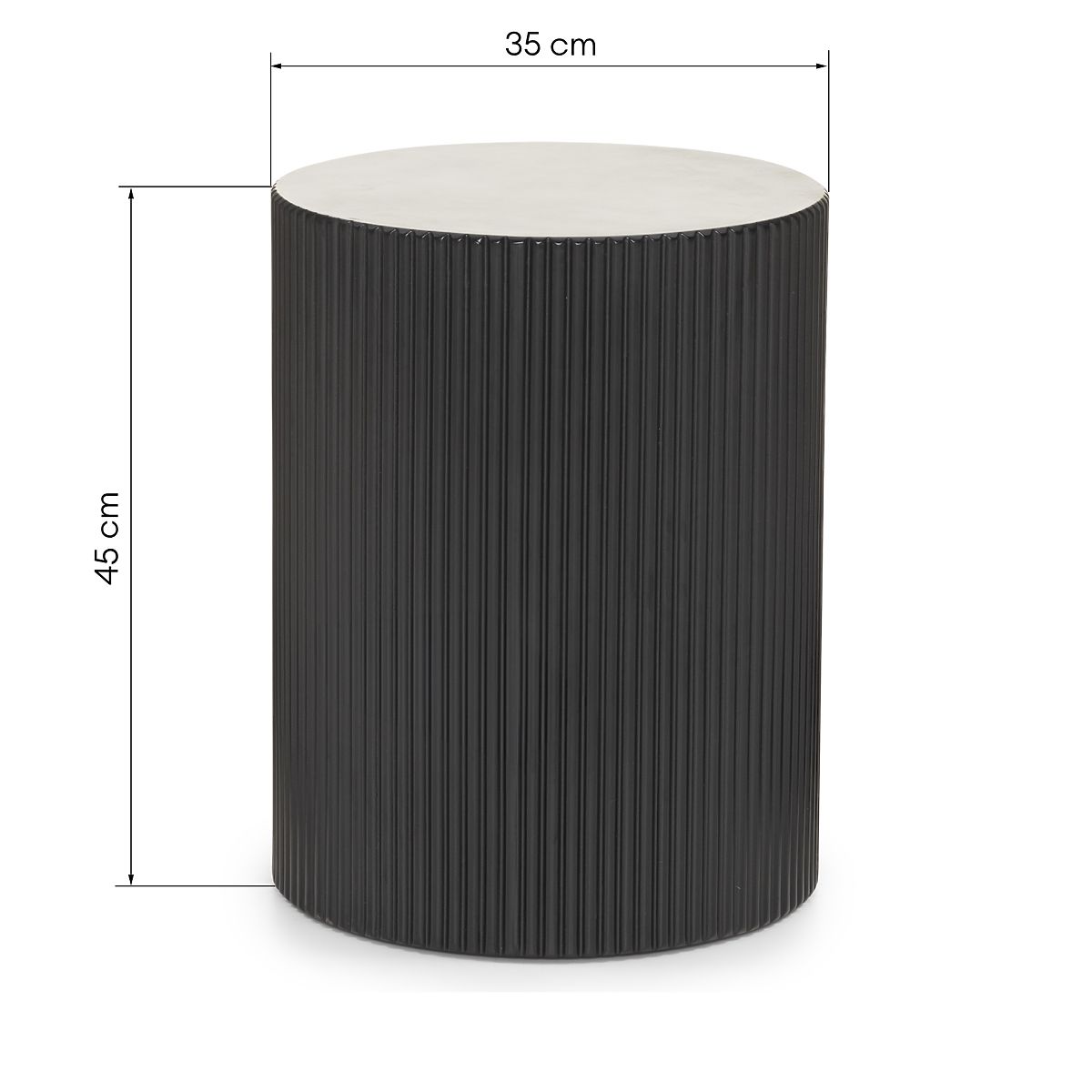 Table d'appoint noire avec plateau rond et rainurage décoratif. .. plus