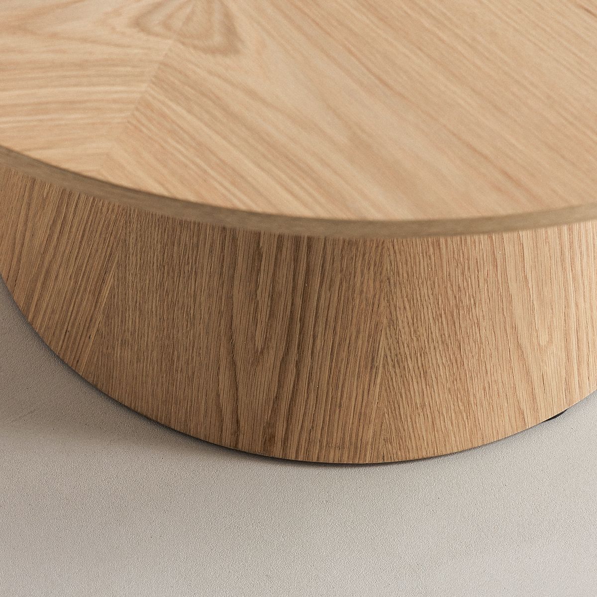 Table basse ronde en placage chêne naturel, 90 cm de diamètre. .. plus