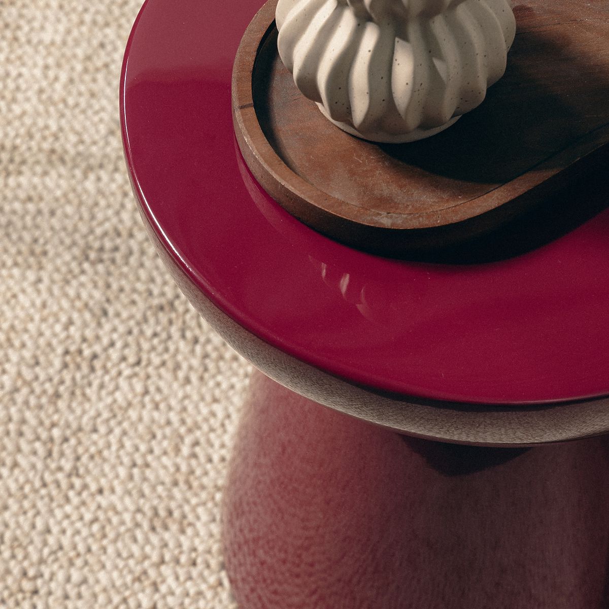 Table d'appoint en oxyde de magnésium avec finition bordeaux-cerise brillante. .. plus