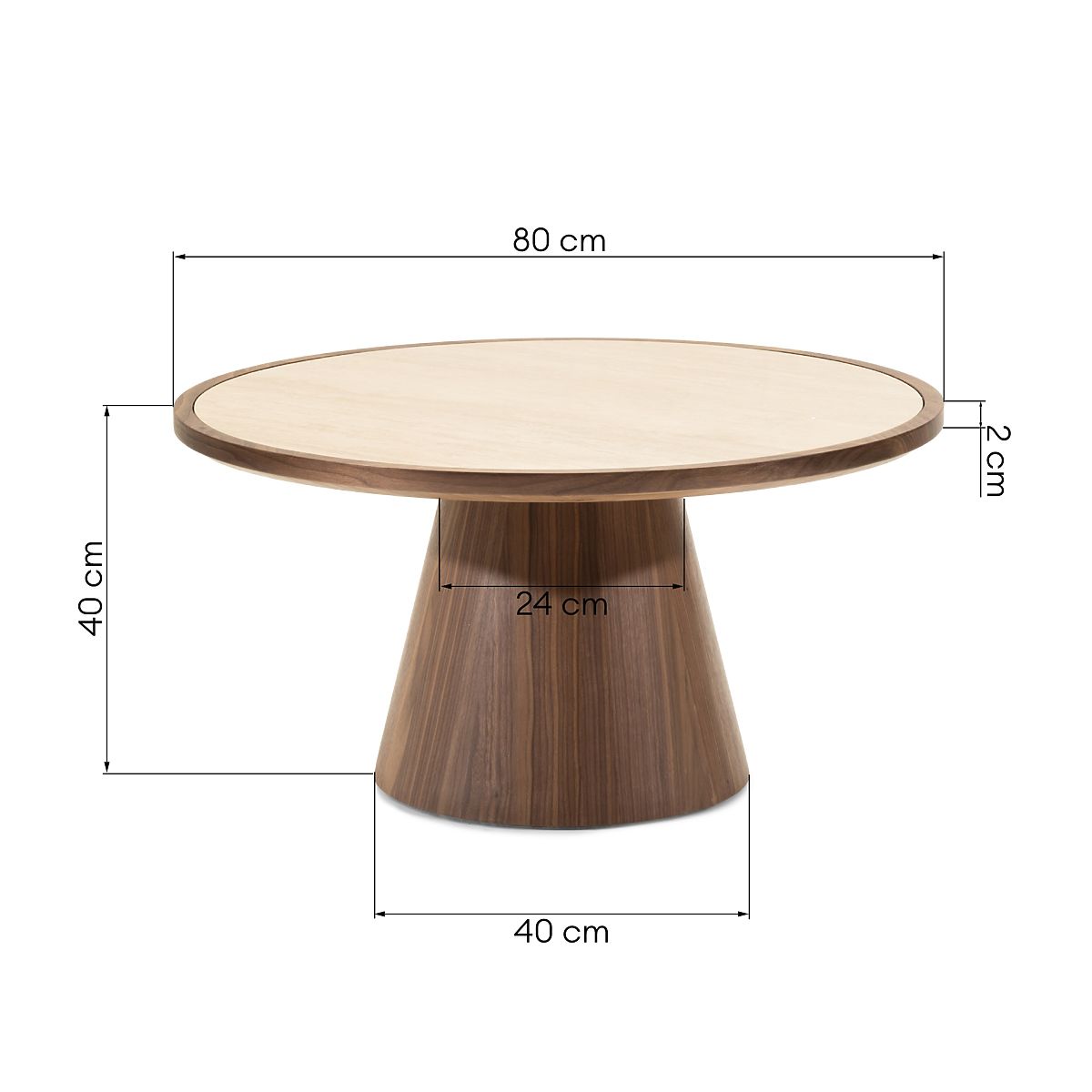 Lukahome.fr » Tables et tables basses / Tables basses / Table basse Kyoto 80 cm, ronde, travertin/noyer