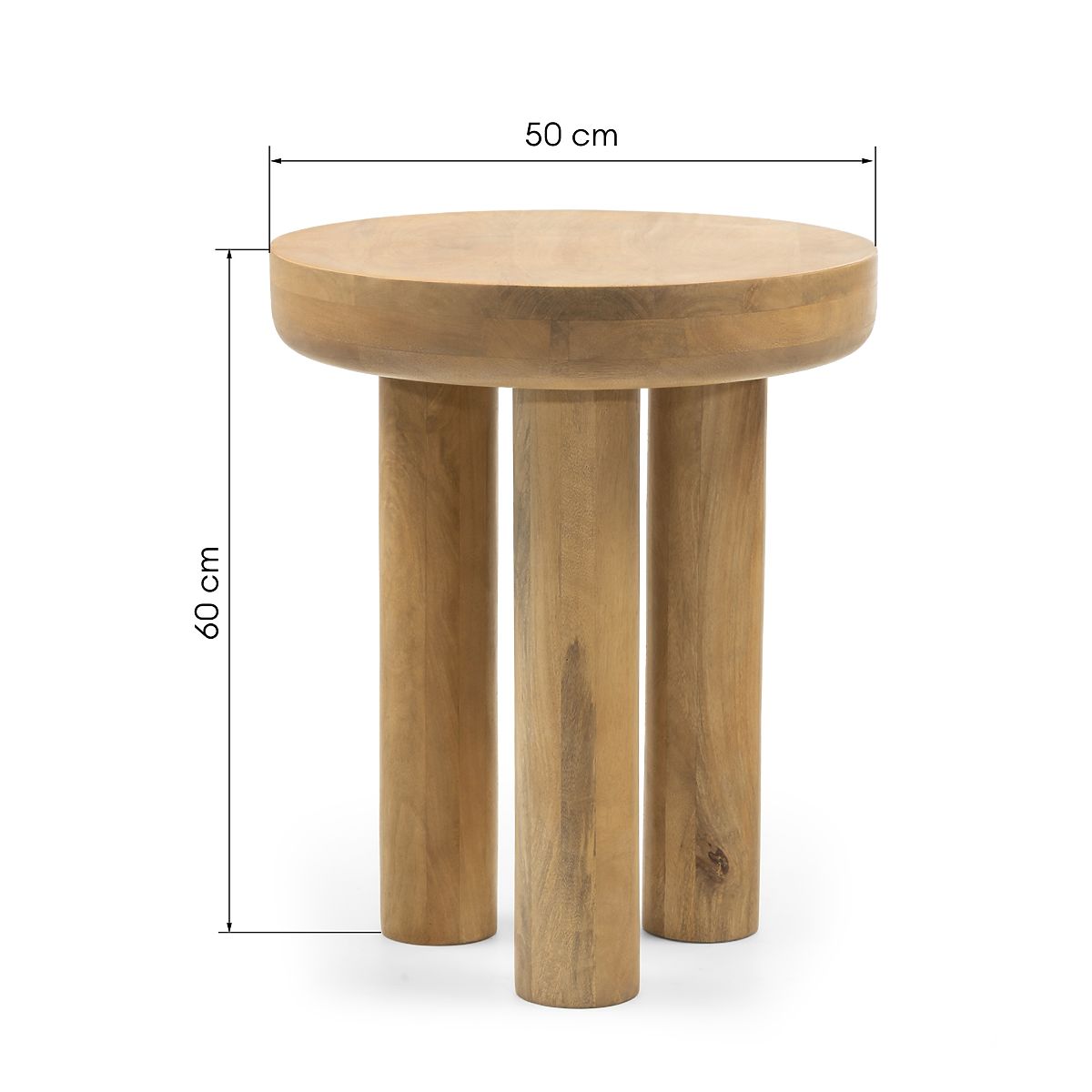 Table d'appoint en bois de manguier avec plateau rond de 50 cm. .. plus