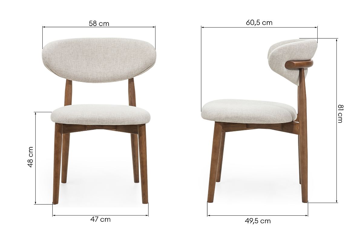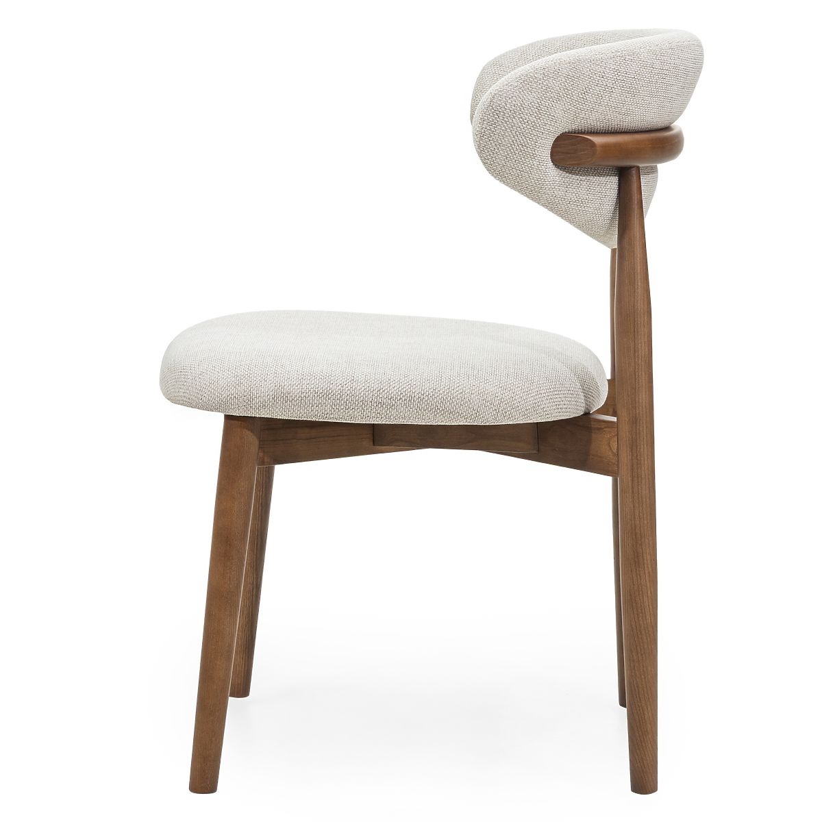 Chaise en tissu beige avec structure en bois de frêne marron. .. plus