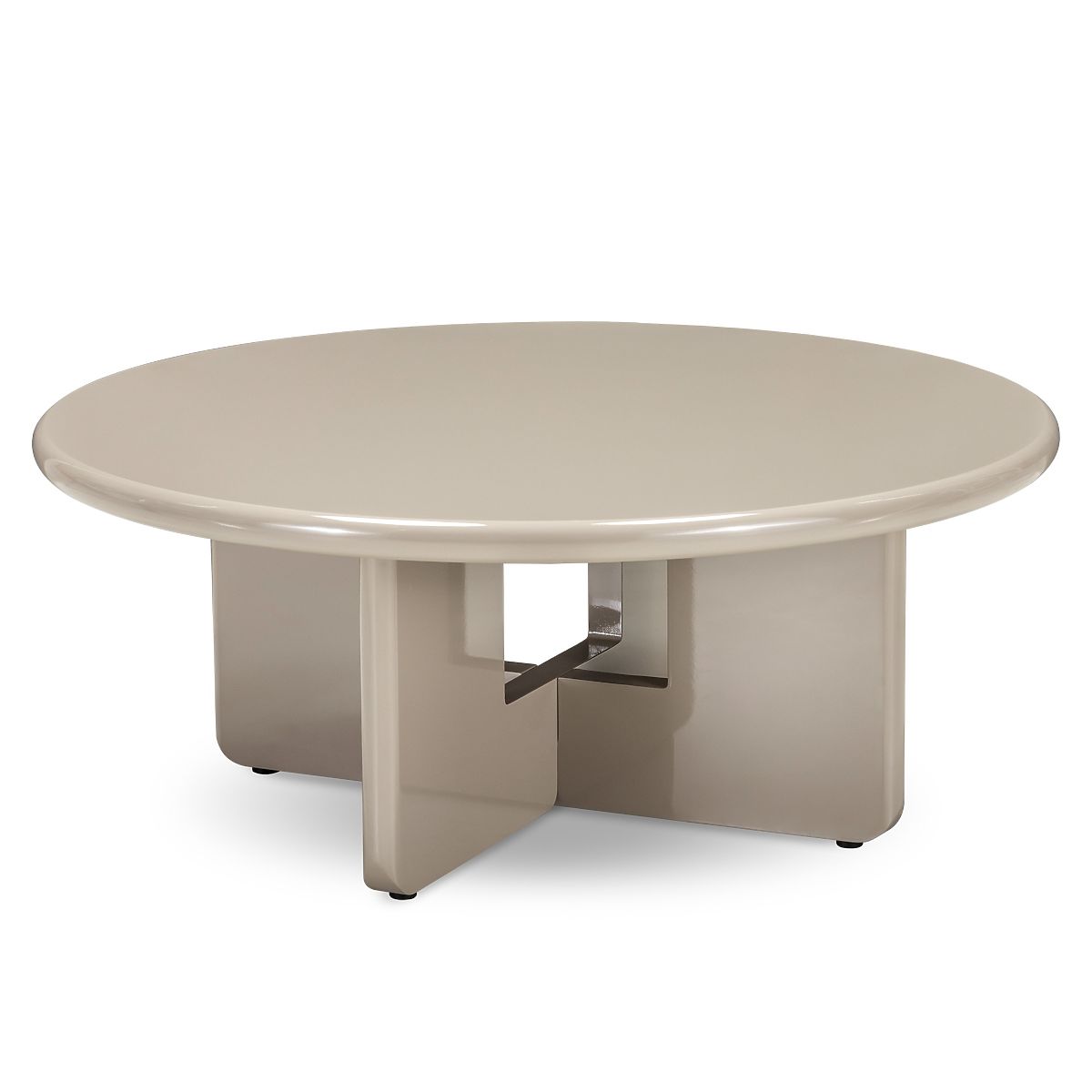 Table basse beige avec finition brillante et plateau rond Ø80 cm. .. plus