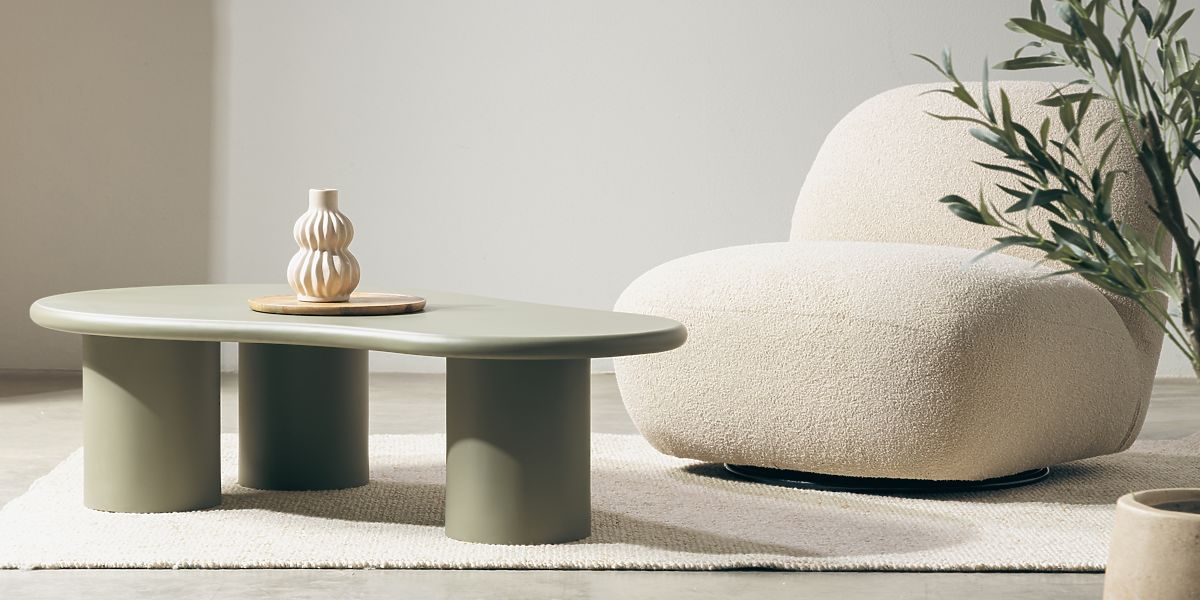 Table basse Sucre avec plateau irrégulier et pieds massifs. .. plus