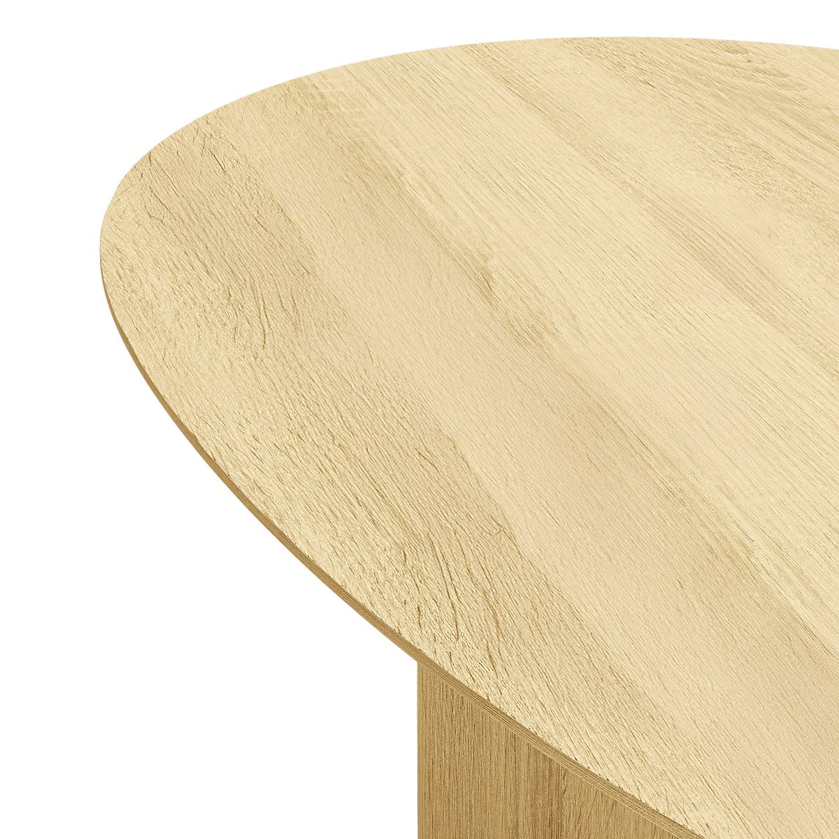 Table basse ovale en chêne naturel avec trois pieds robustes. .. plus