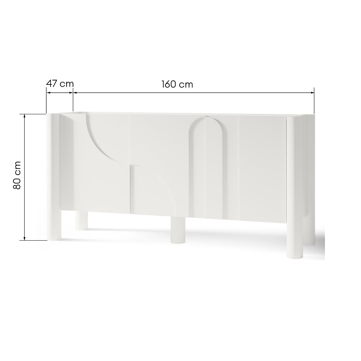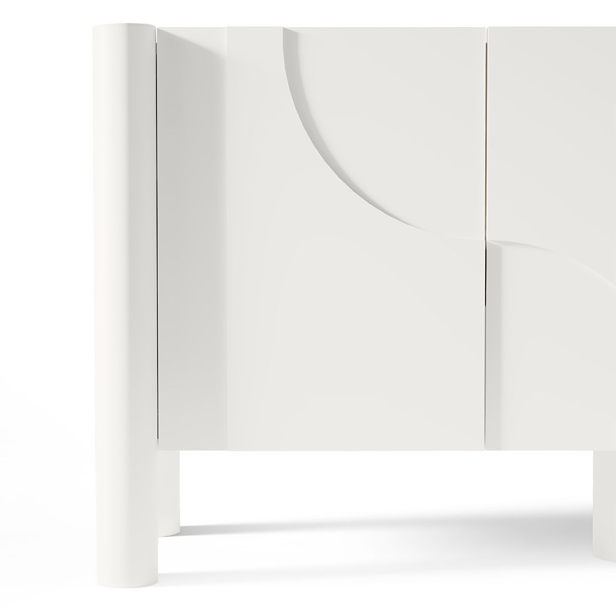 Commode trois portes blanche avec façade fraisée artistique. .. plus