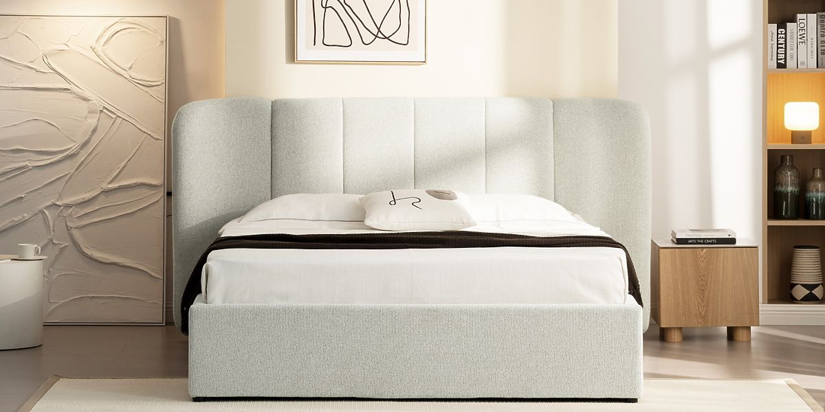 Lit Snoovia beige clair avec sommier et espace de rangement. .. plus