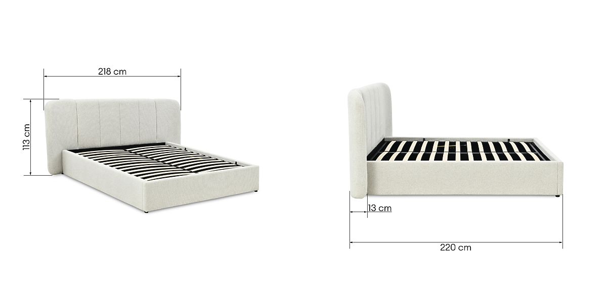 Lukahome.fr » Lit / Matrimonial lit / Lit 160x200 / Lit rembourré Snoovia 160x200 cm, avec sommier et espace de rangement, beige clair