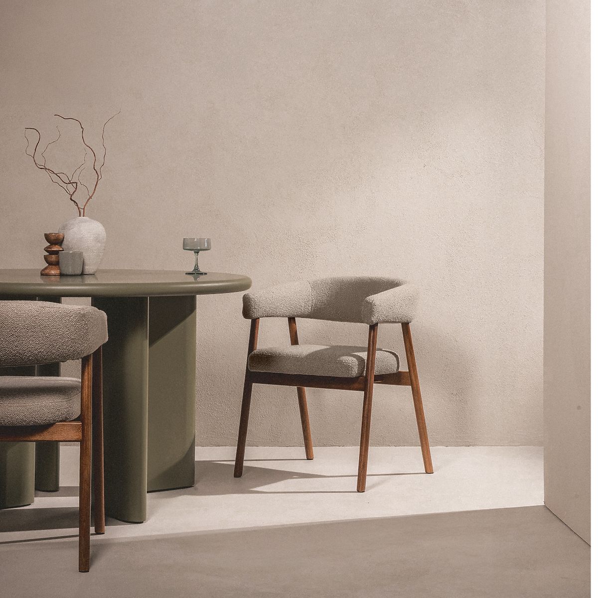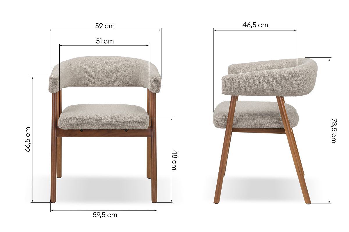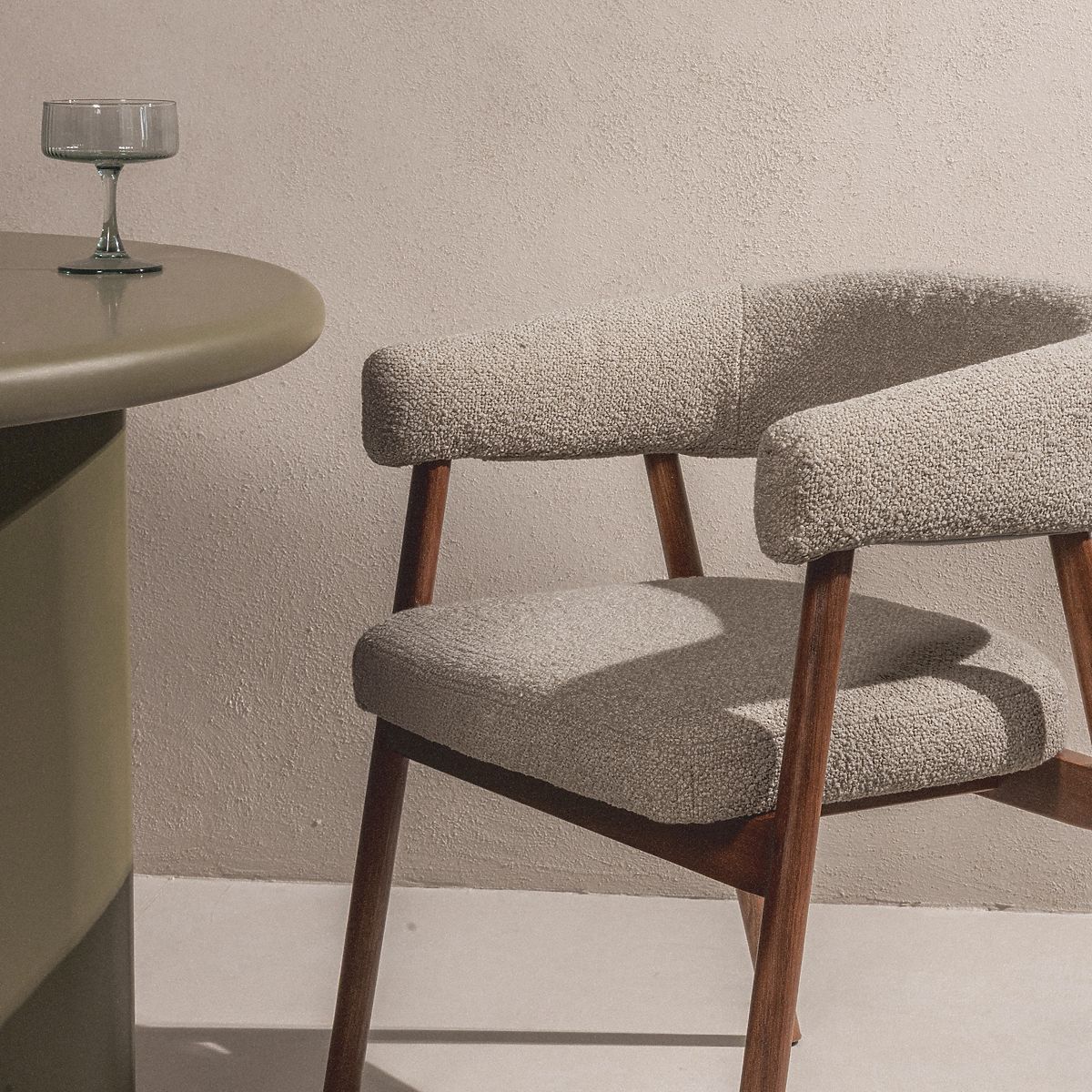 Chaise Giovani en tissu brun clair et bois de chêne, design moderne. .. plus