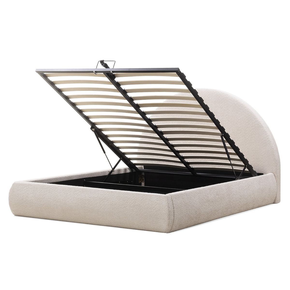 Lukahome.fr » Lit / Matrimonial lit / Lit 140x200 / Lit en tissu Orbi 140x200 cm, avec sommier et espace de rangement, arrondi, beige
