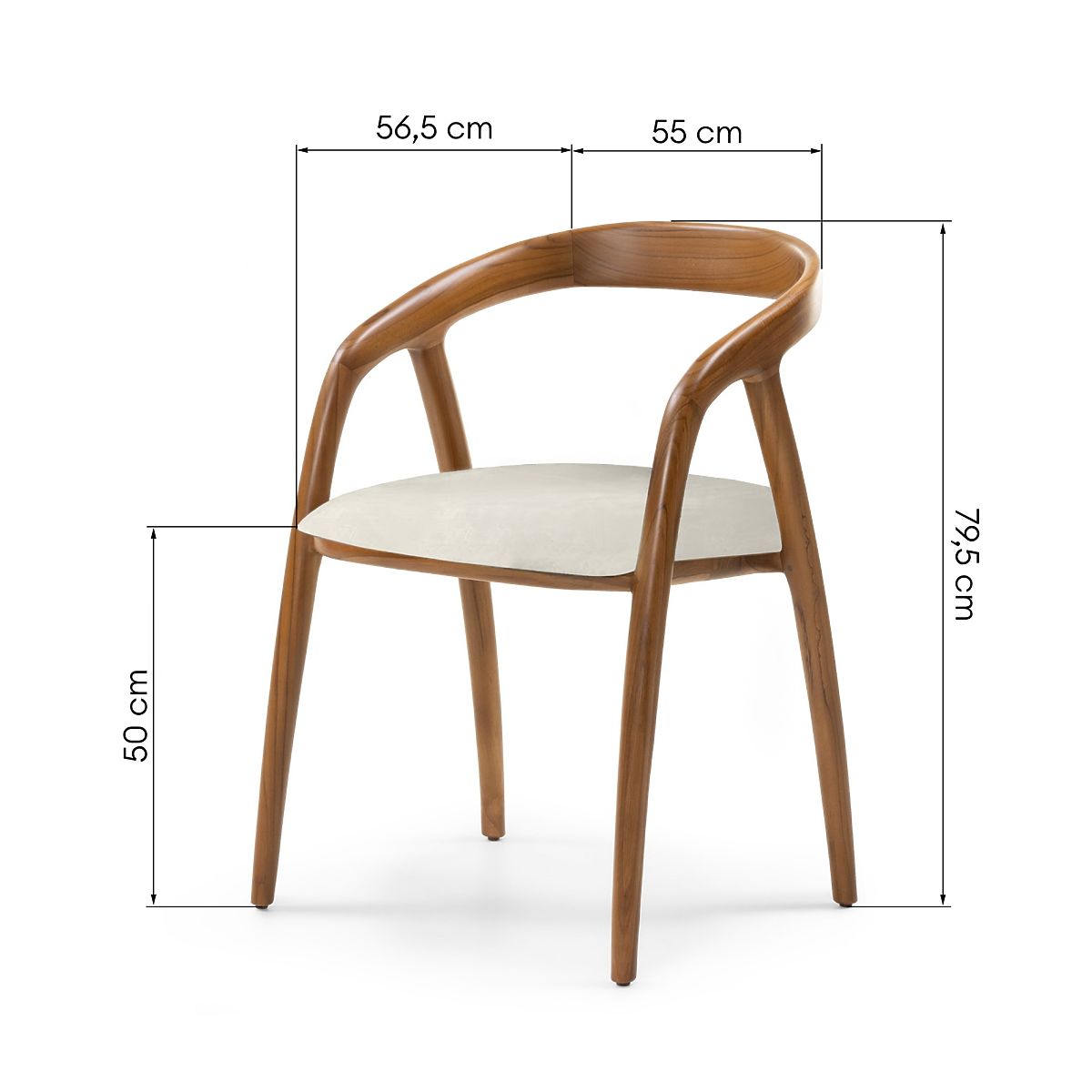 Lukahome.fr » salle à manger et cuisine / Chaises de salle à manger / Chaise en bois Sande arrondie, naturel/crème, bois de teck