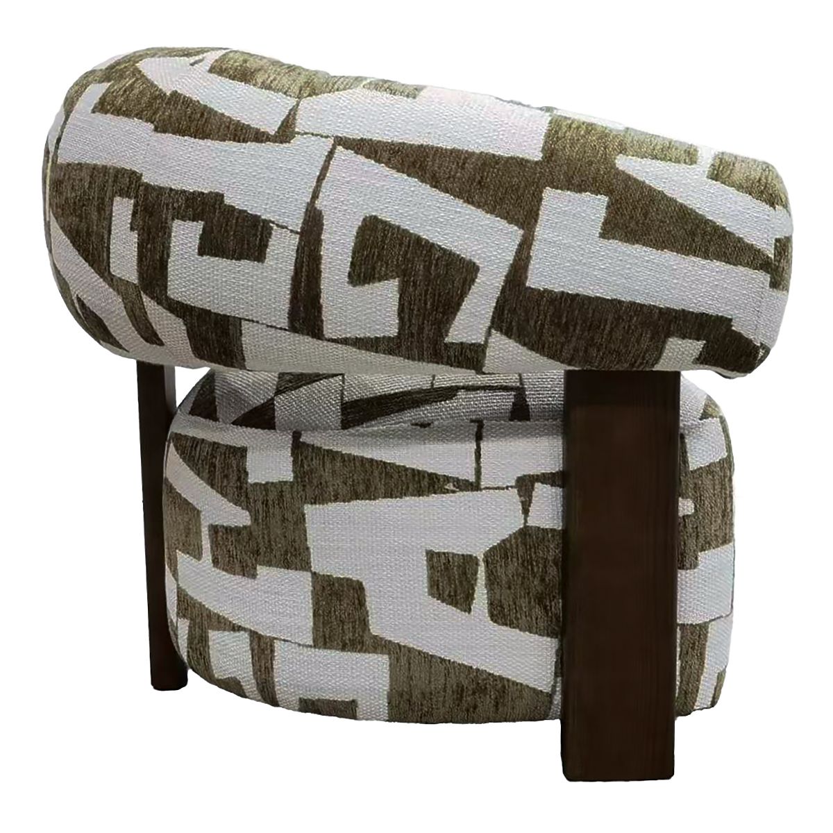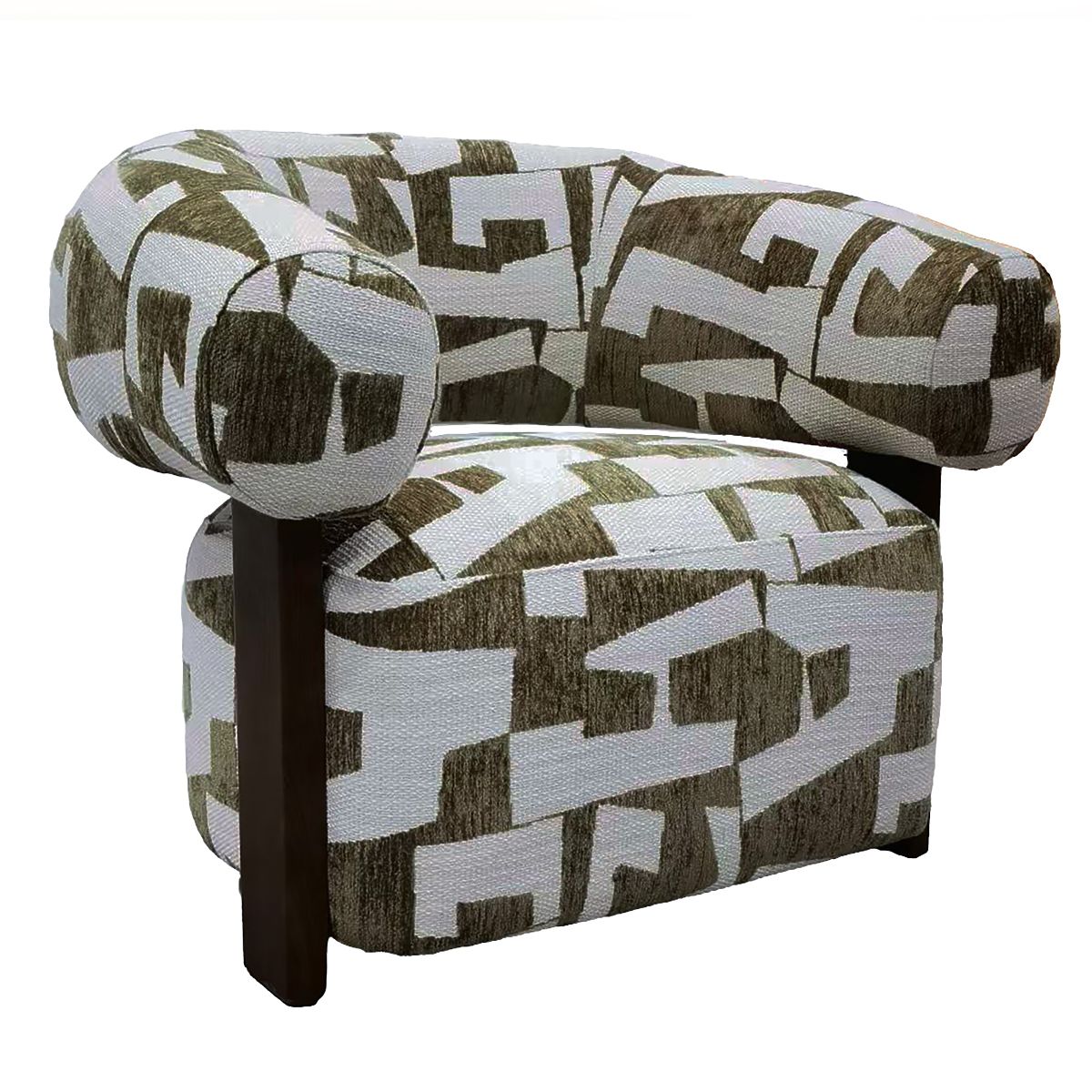 Fauteuil relax Maribel avec revêtement olive-crème et pieds en bois de frêne. .. plus