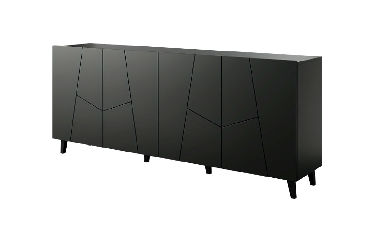 Commode noire en MDF avec pieds en plastique. .. plus