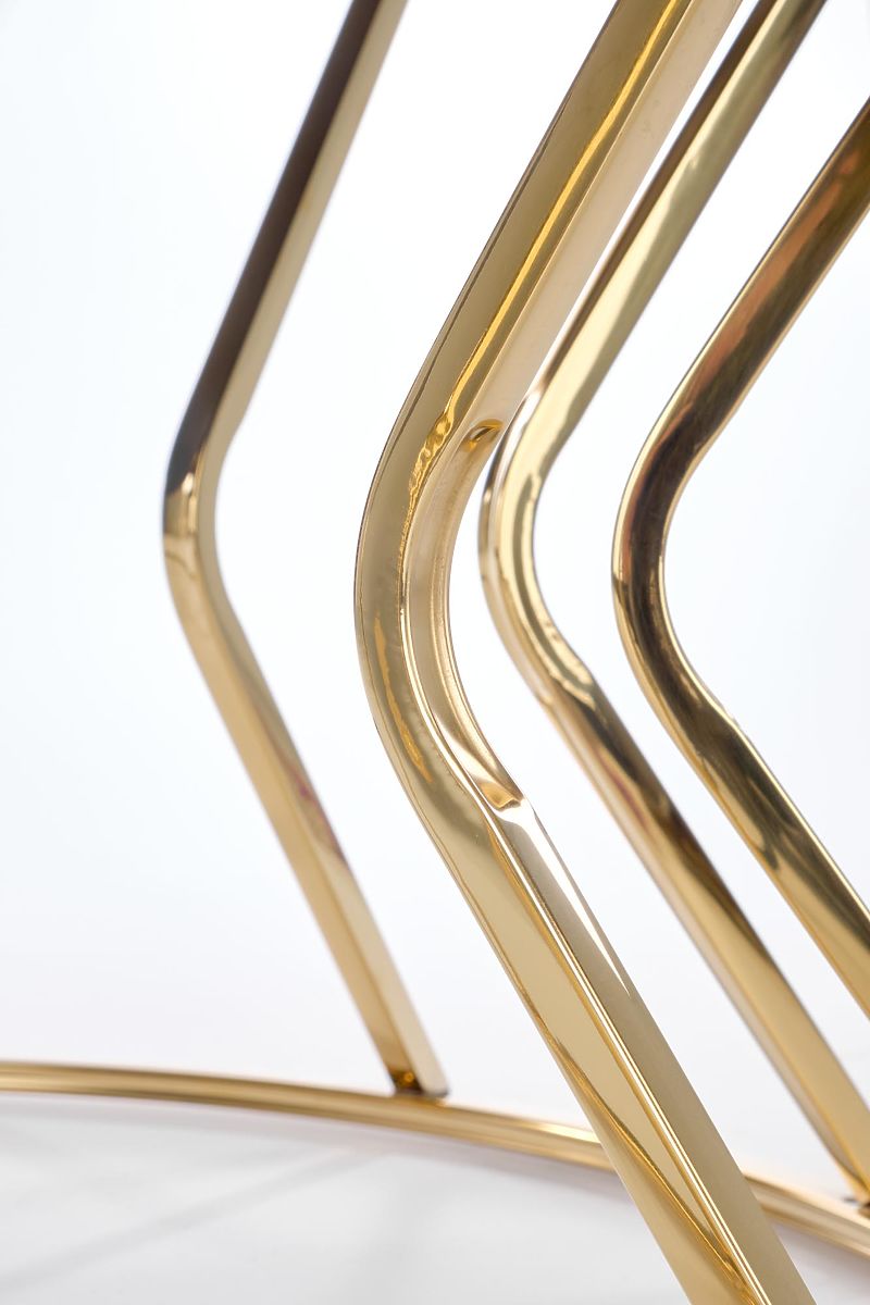 Table en verre et acier inoxydable avec finition dorée. .. plus