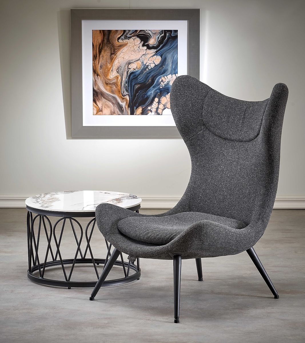 Fauteuil de relaxation en tissu anthracite avec pieds noirs. .. plus