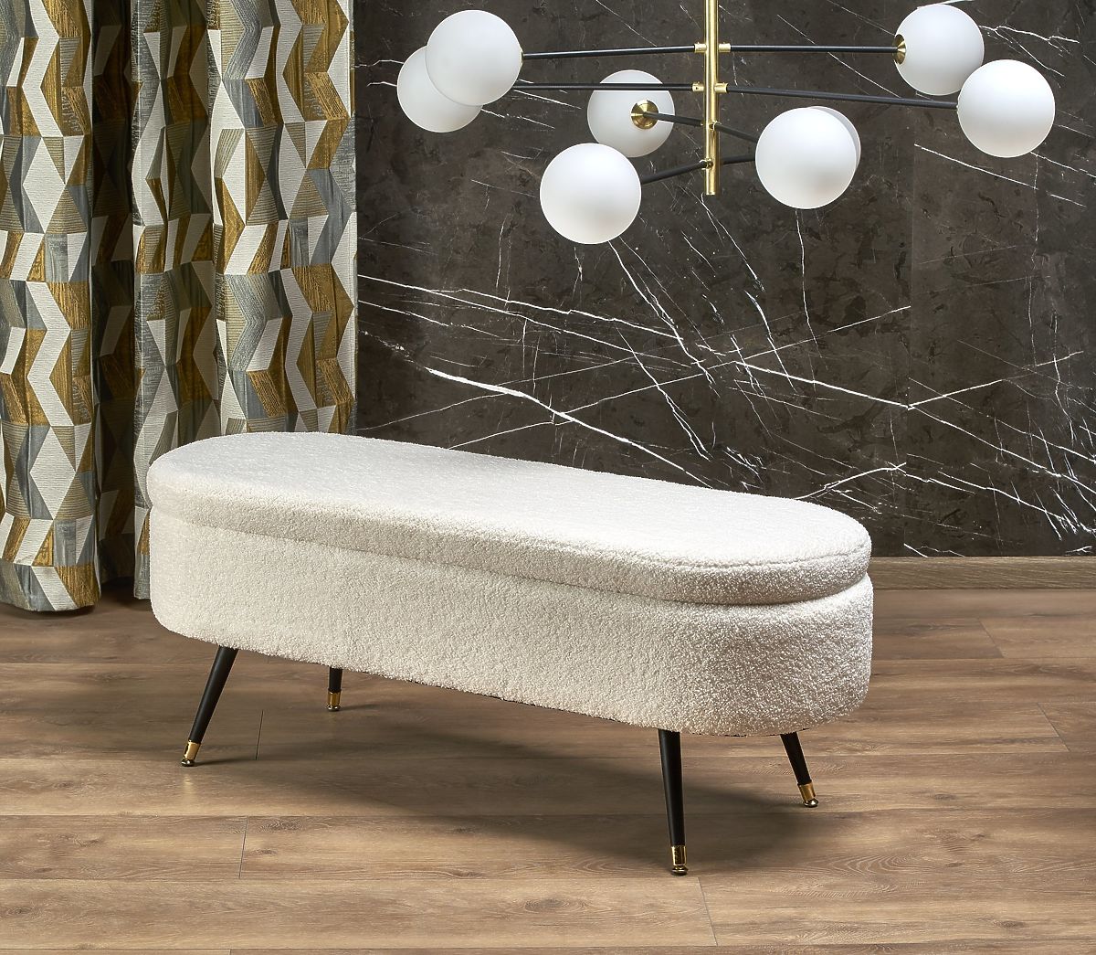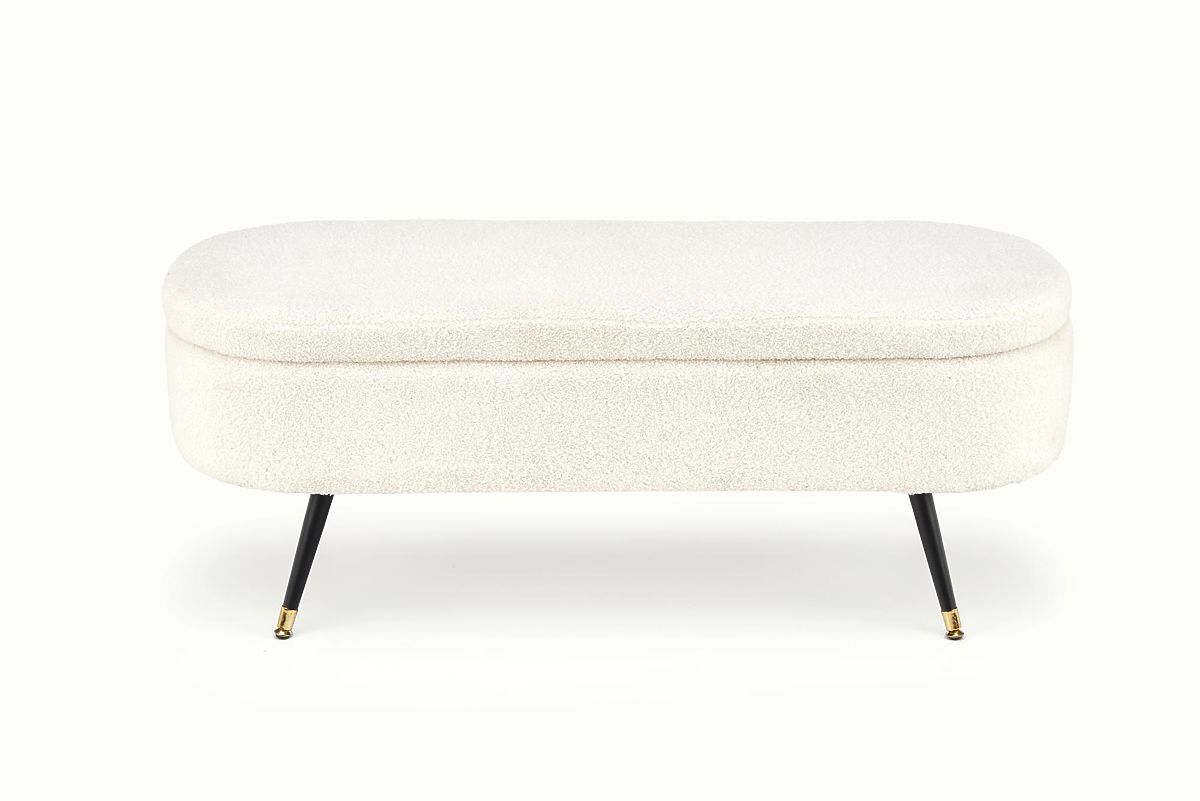Banc crème AVEIRO avec espace de rangement et tissu bouclé doux. .. plus