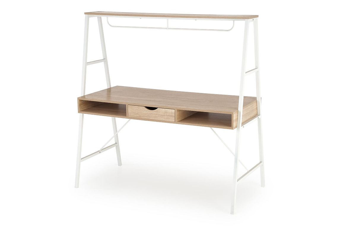 Ce bureau moderne est un excellent choix pour un bureau à domicile, un bureau professionnel, une chambre d'enfant ou d'étudiant. Il allie fonctionnalité, durabilité et design élégant dans un décor de bois clair agrémenté d'éléments blancs. La surface de travail offre suffisamment d'espace pour travailler sur un ordinateur, étudier ou organiser des documents. Le bureau est équipé de compartiments de rangement pratiques qui aident à garder l'espace de travail ordonné. Les parties avant sont fabriquées en MDF de qualité avec une finition mate, tandis que le corps stable est constitué d'une structure métallique solide, également en finition mate. Grâce à son orientation universelle, il peut être facilement placé dans différents types de pièces et s'harmoniser avec des intérieurs modernes.