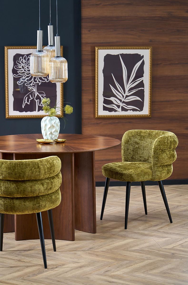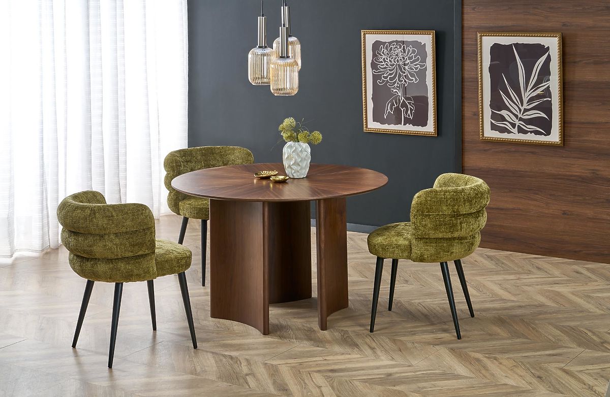 Table ronde en MDF avec placage naturel, couleur noyer. .. plus