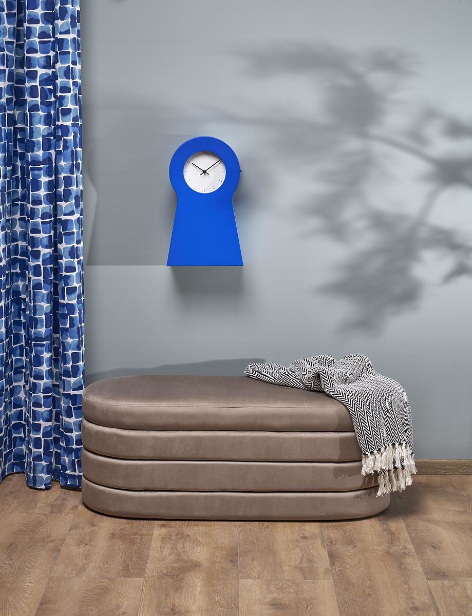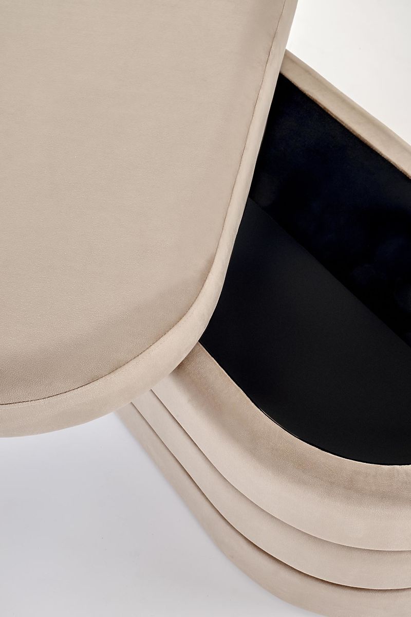 Banc beige avec espace de rangement en velours. .. plus