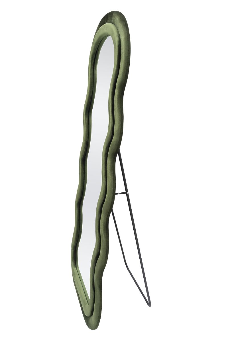 Miroir sur pied ou mural avec cadre en velours olive. .. plus