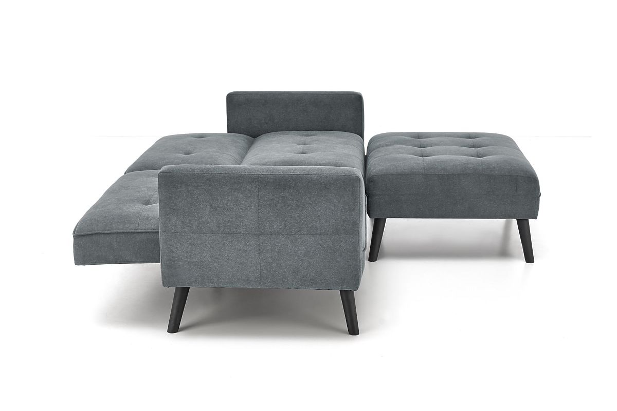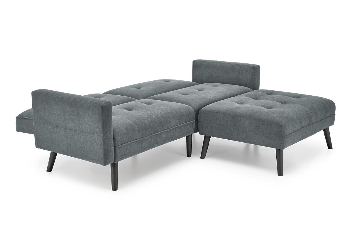 Canapé convertible gris avec repose-pieds en bois massif. .. plus