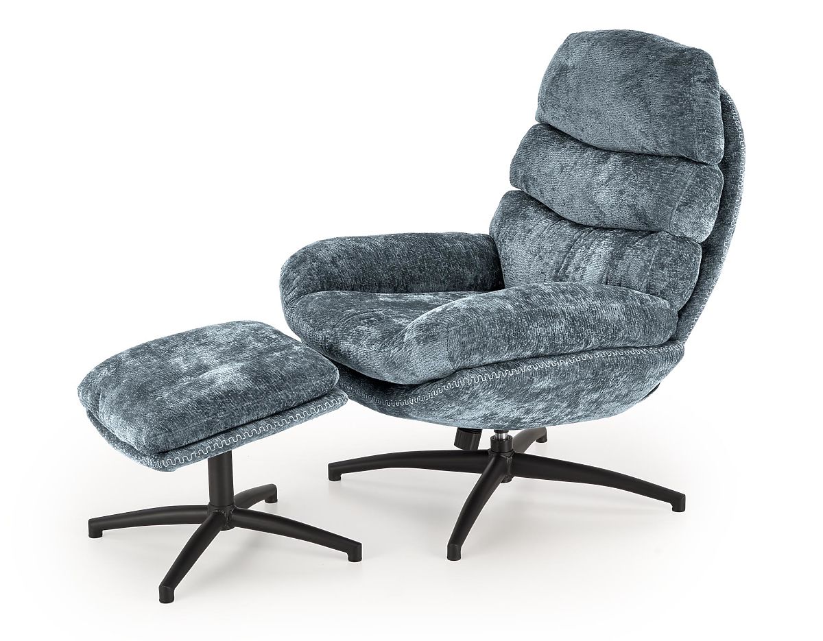 Fauteuil DARIO avec repose-pieds et fonction basculante en bleu. .. plus