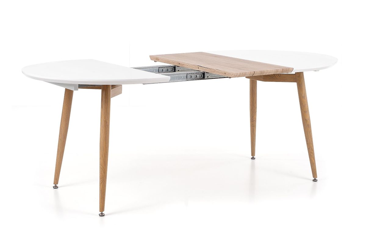 Table extensible en MDF et acier, blanc et chêne san remo. .. plus