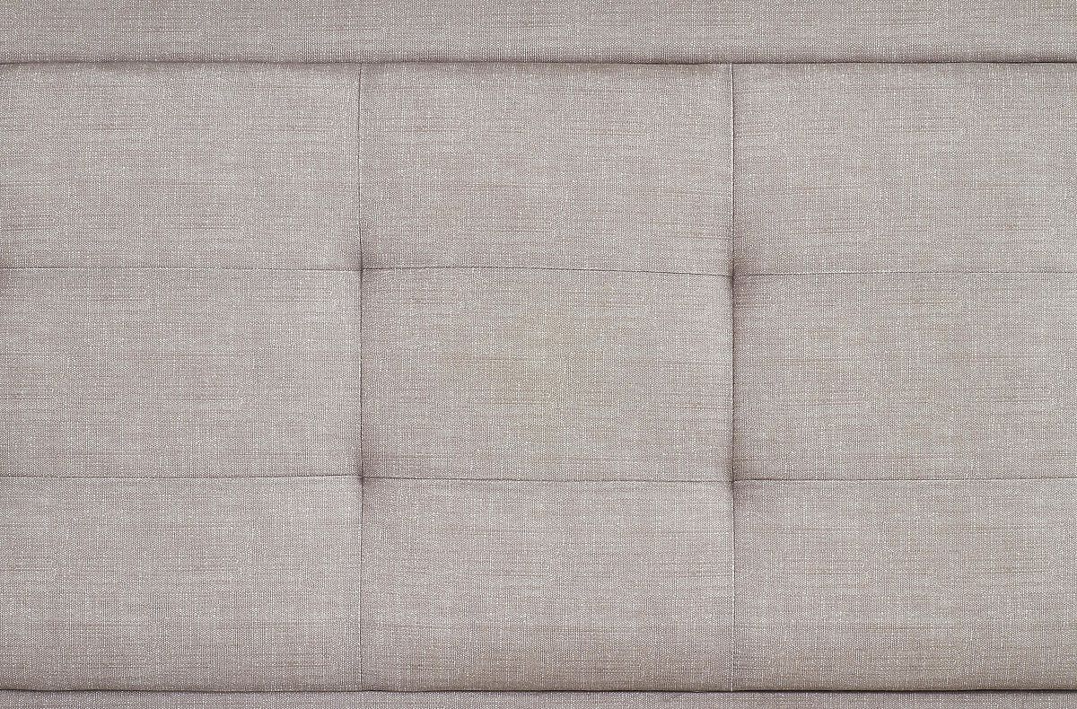 Lit beige avec tiroirs en tissu et bois massif. .. plus