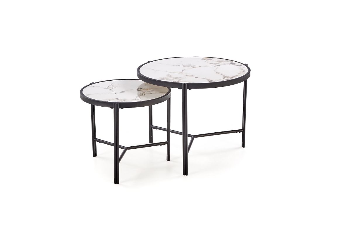 Lukahome.fr » Tables et tables basses / Tables basses / FATIMA ensemble de 2 bancs, marbre blanc / noir (1p=1 pièce)