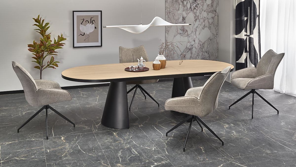 Lukahome.fr » salle à manger et cuisine / Tables à manger / Table extensible GIACOMO, plateau - naturel, pied - noir (2p=1ks)