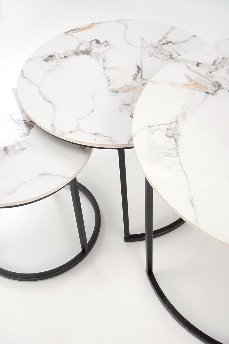 Lukahome.fr » Tables et tables basses / Tables basses / Ensemble de 3 tables GILDA, marbre blanc / noir (1p=1set)