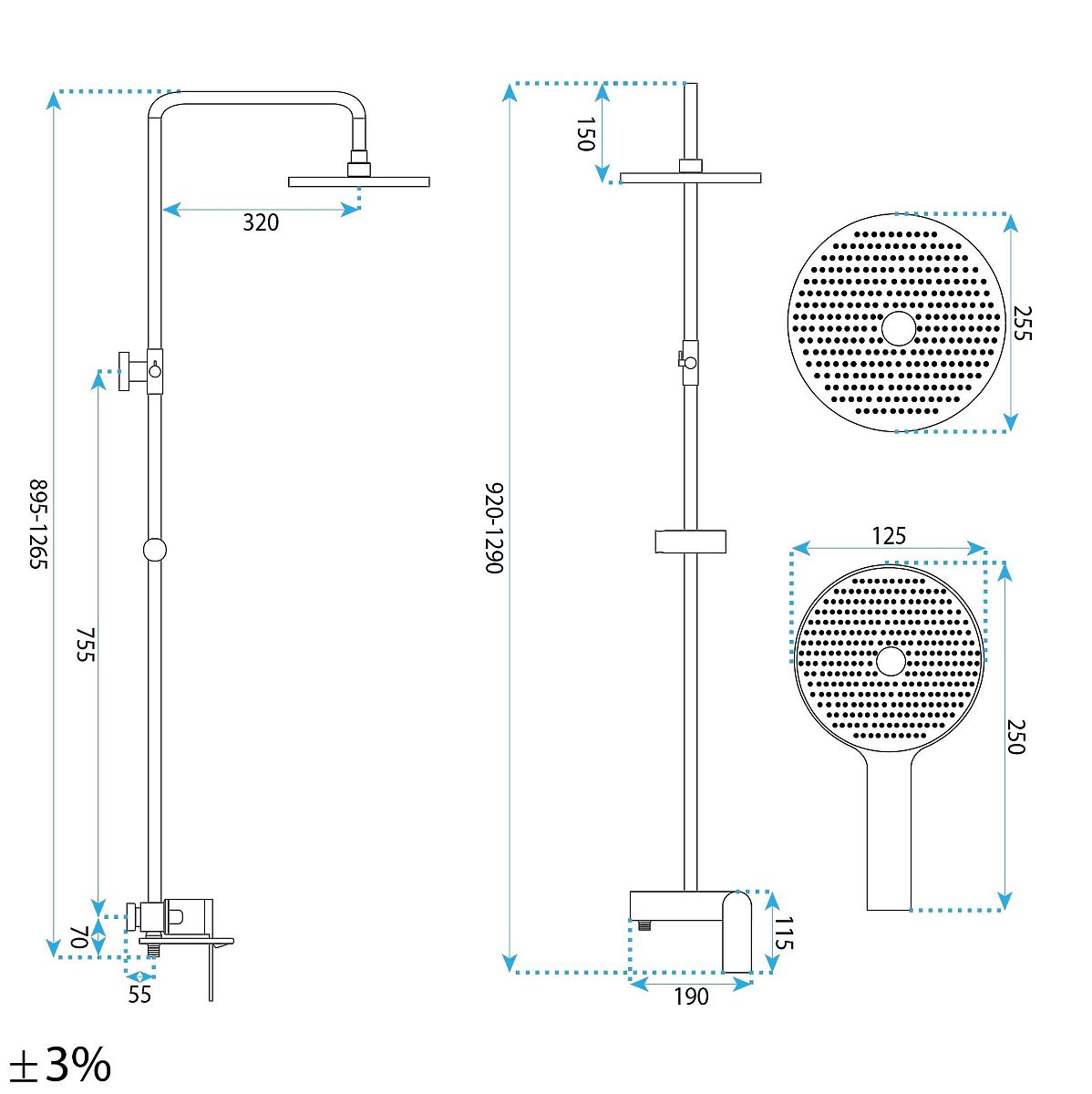 Ensemble de douche Marco avec design or brossé élégant et durable. .. plus