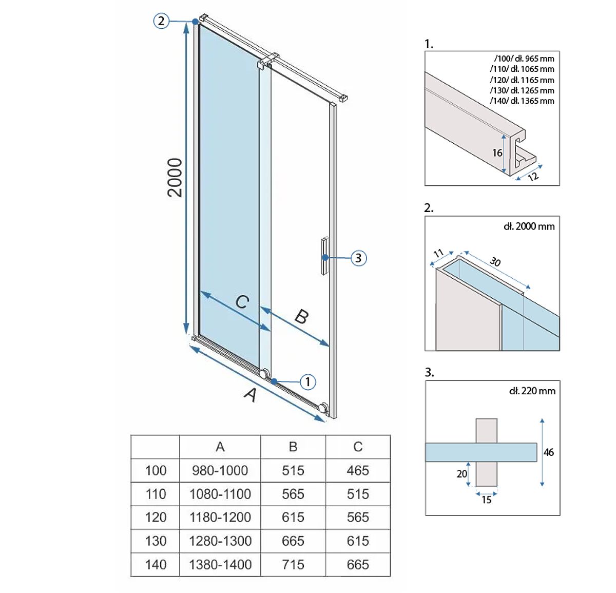 Porte de douche en verre avec finition dorée brossée. .. plus