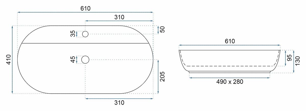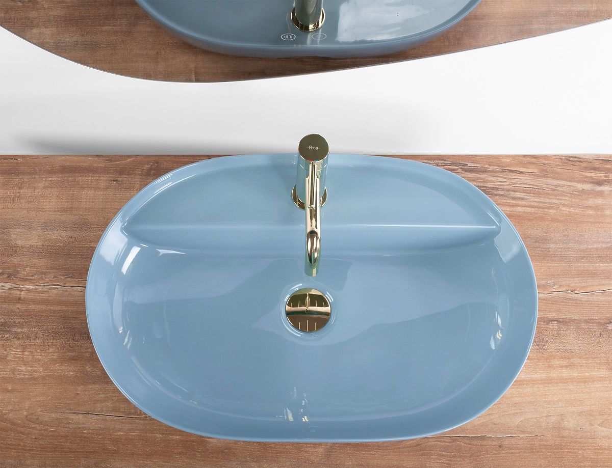 Le lavabo Rea Aura, avec sa forme elliptique intéressante, complète parfaitement tout intérieur moderne. Il est conçu pour être monté sur un plan de travail ou un meuble. Le lavabo n'est pas entièrement encastré, il a une découpe à l'arrière au niveau de l'ouverture de montage pour le robinet.