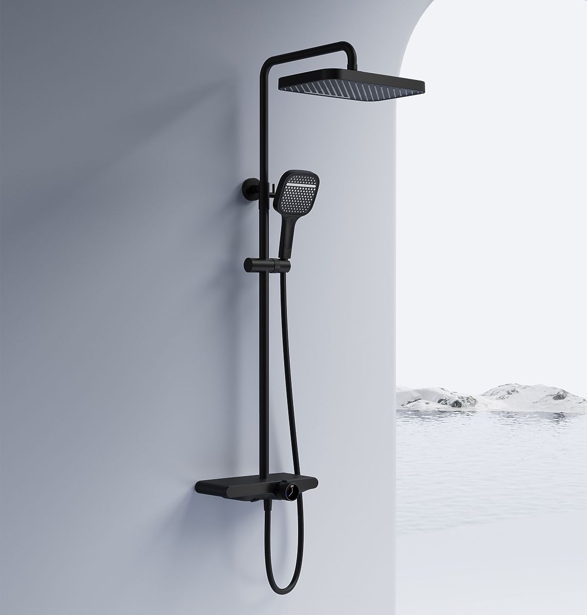 Ensemble de douche mural avec douche à effet pluie et mitigeur protégé. .. plus