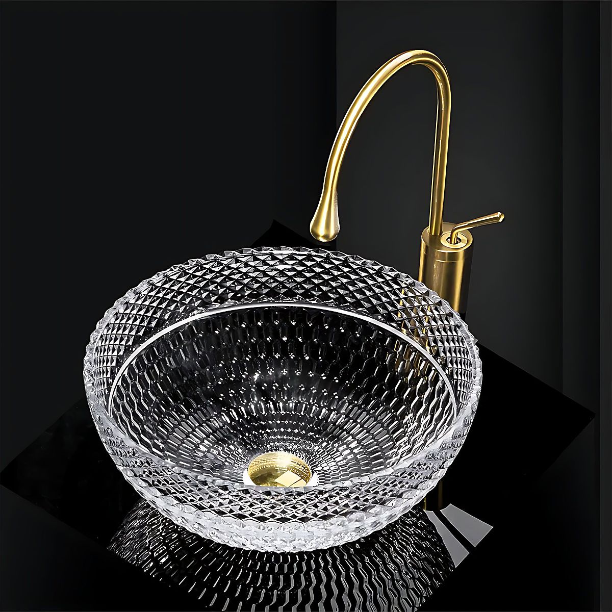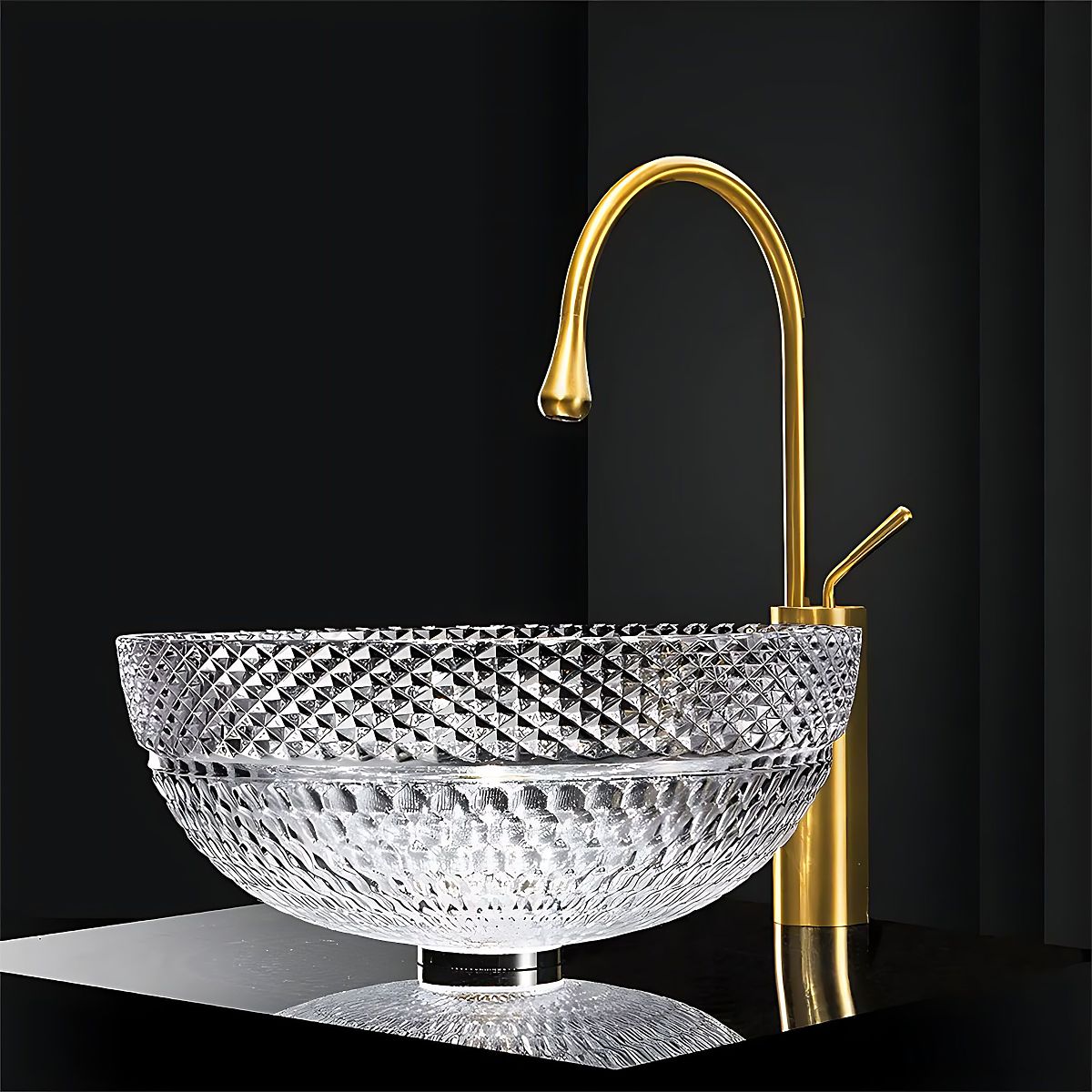Lavabo en cristal Sue avec motif diamant pour une salle de bain élégante. .. plus