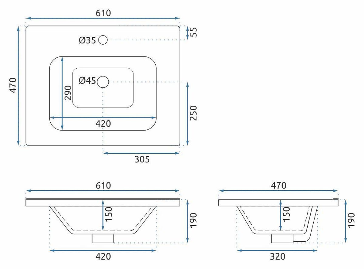 L'ensemble comprend un lavabo en céramique avec un trou pour le robinet, adapté à la taille de l'armoire inférieure. Sa forme universelle s'harmonise bien avec le reste de l'ensemble, formant un tout uniforme et esthétique.