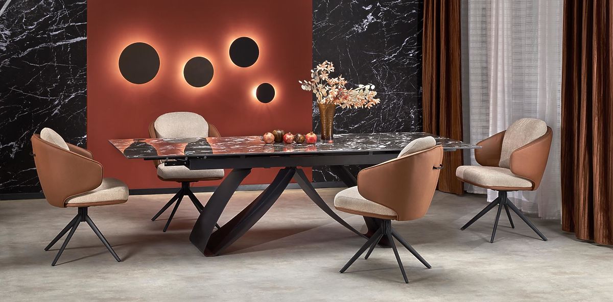 Lukahome.fr » salle à manger et cuisine / Salle à manger tables / Table extensible HILARIO, plateau - marbre noir, pieds - noirs (3p=1ks)