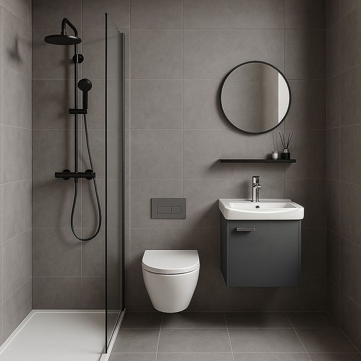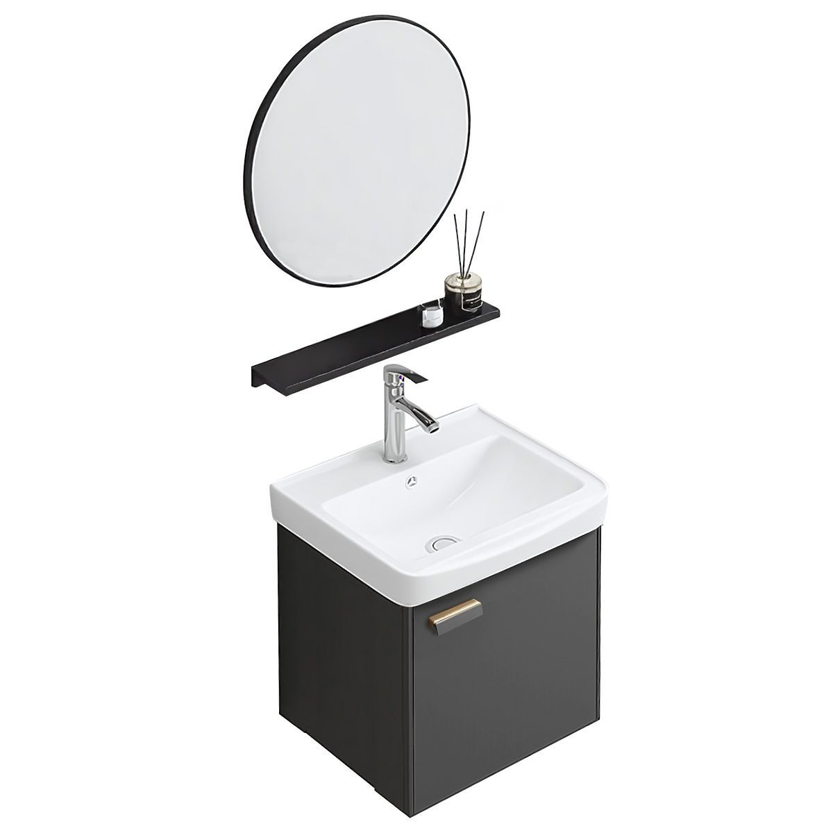 Ensemble de salle de bain moderne Molly – armoire avec lavabo + miroir + étagère L'ensemble de meubles de salle de bain Molly est une solution pratique et stylée pour les salles de bain modernes, où la fonctionnalité et le design léger et minimaliste sont essentiels. Le set se compose d'une armoire murale avec lavabo, d'un miroir rond et d'une étagère, créant une zone de lavabo unifiée idéale pour un usage quotidien. C'est une solution pratique pour les salles de bain de différentes tailles – petites et moyennes. h4. Design simple qui s'adapte à toute disposition Le modèle Molly se distingue par une surface frontale lisse et uniforme et une forme géométrique qui s'intègre bien dans toute disposition. Les variantes de couleurs disponibles – blanc et graphite – permettent d'adapter l'ensemble à différents styles d'intérieur : du moderne au plus classique. L'apparence générale est complétée par une poignée contrastante et un miroir rond, qui ajoutent une légèreté optique à l'intérieur. h4. Fonctionnalité enfermée dans la simplicité L'étagère incluse permet d'organiser confortablement les cosmétiques les plus nécessaires, offrant ainsi plus d'espace de rangement sans encombrer le mur. L'armoire inférieure peut contenir les articles de première nécessité et le montage mural garantit que l'ensemble a un aspect moderne et laisse un espace libre sous les meubles – ce qui facilite grandement le nettoyage. h4. Lavabo adapté à l'ensemble L'ensemble comprend un lavabo en céramique avec un trou pour le robinet, parfaitement adapté à l'armoire inférieure. Sa forme neutre assure une utilisation confortable et une harmonie esthétique avec les autres éléments. L'ensemble Molly est complet, prêt à être monté, et convient parfaitement aux salles de bain aménagées en tenant compte de la simplicité et de l'utilisation pratique de l'espace.