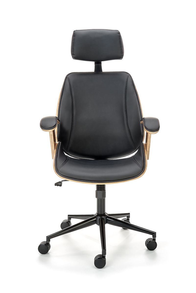 Chaise pivotante en noyer et cuir écologique noir. .. plus