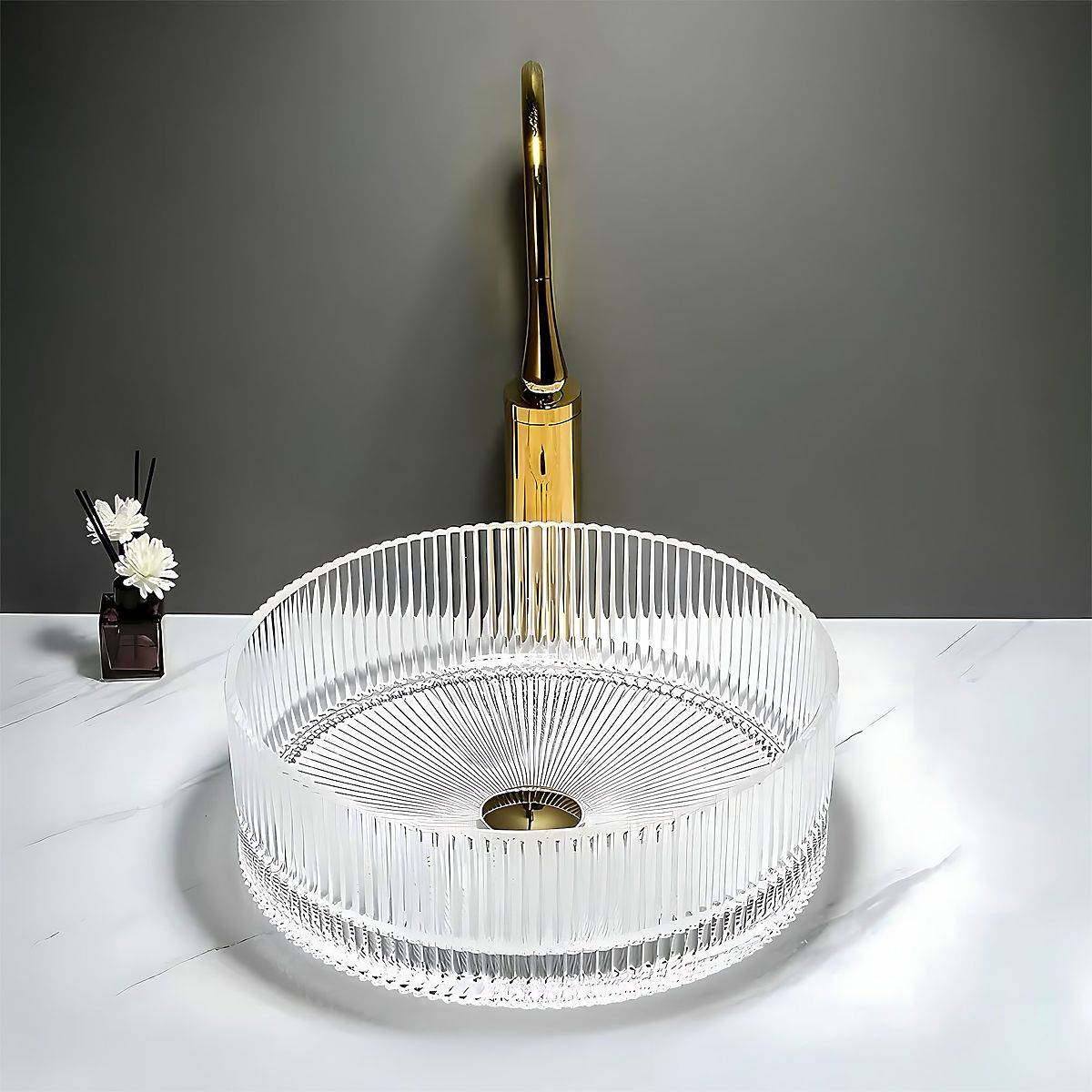 Le lavabo de meuble Ingrid 36 est un choix idéal pour ceux qui recherchent une solution élégante et originale pour leur salle de bain. Fabriqué en verre de haute qualité, il se distingue par sa surface rainurée et son design transparent, qui confèrent à l'intérieur un caractère unique et un style luxueux.