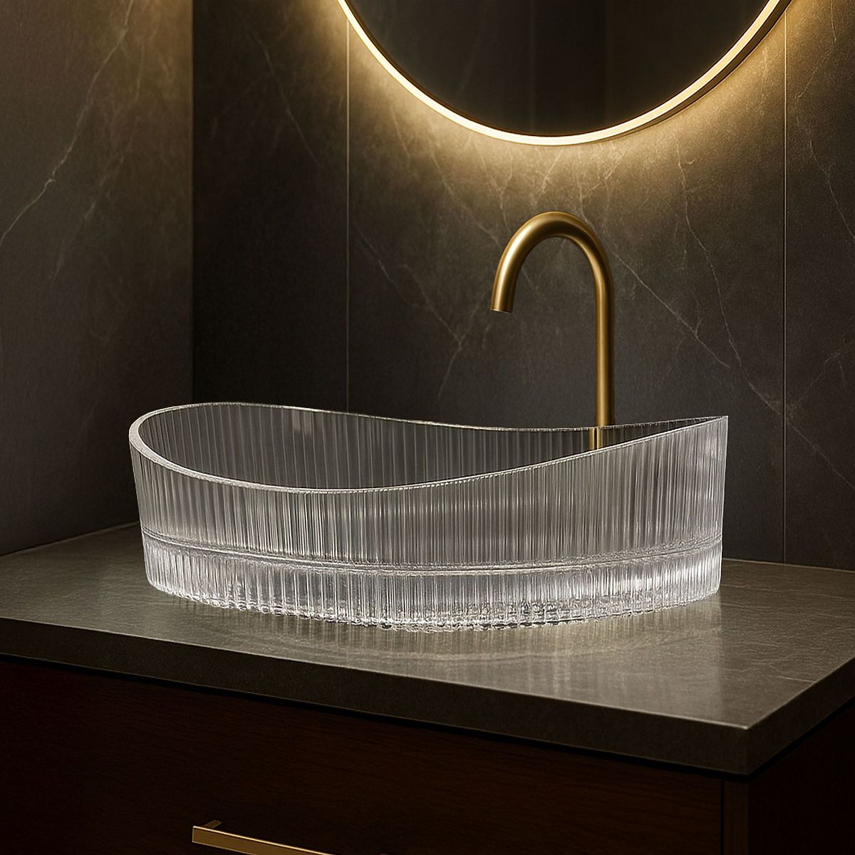 Le modèle Harper allie esthétique et fonctionnalité - le verre solide est résistant à une utilisation quotidienne et la surface lisse à l'intérieur du bassin facilite le maintien de la propreté. Il est conçu pour être monté sur un plan ou un meuble, offrant une liberté totale d'agencement. Son design moderne s'accorde parfaitement avec des accessoires en teintes dorées, noires ou chromées, permettant de créer un espace harmonieux et attrayant.