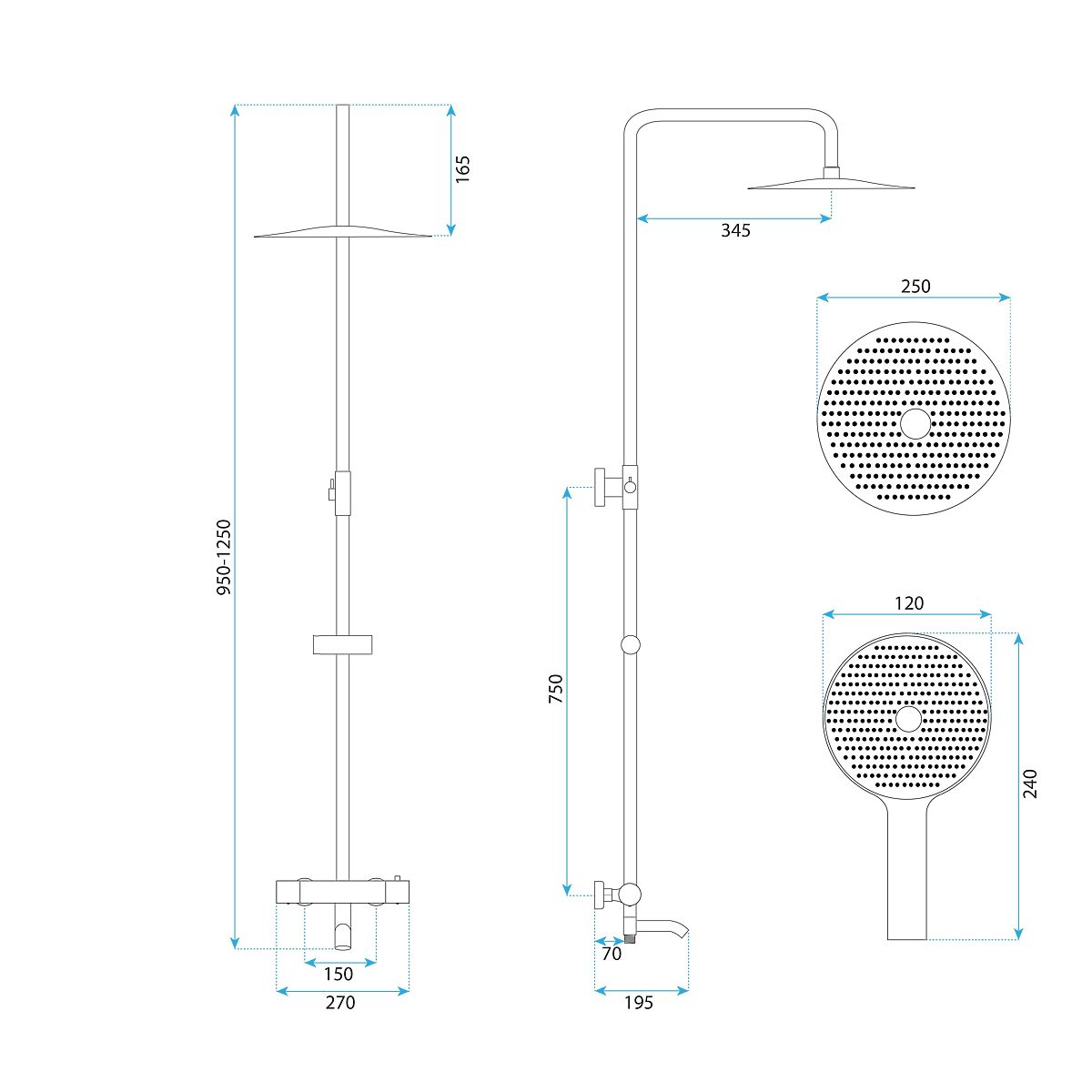 Ensemble de Douche avec Thermostat Rea Lungo Diamond Cuivré